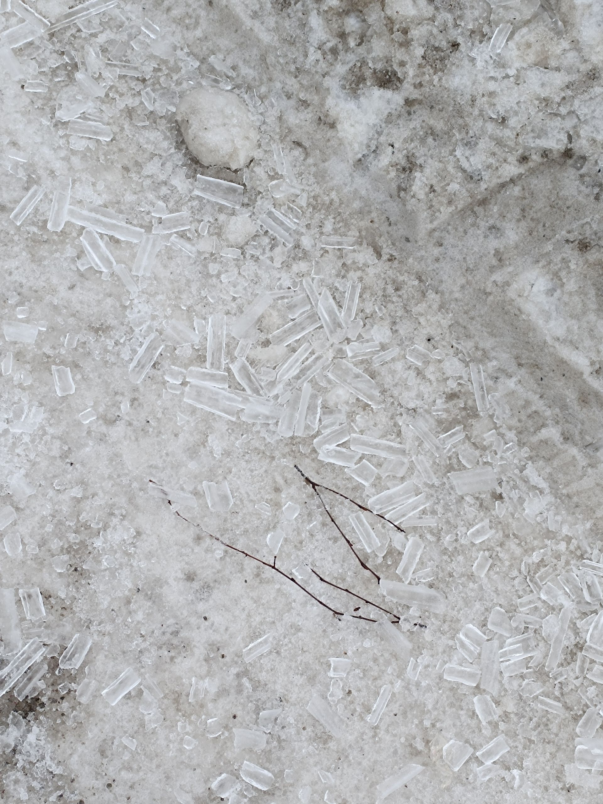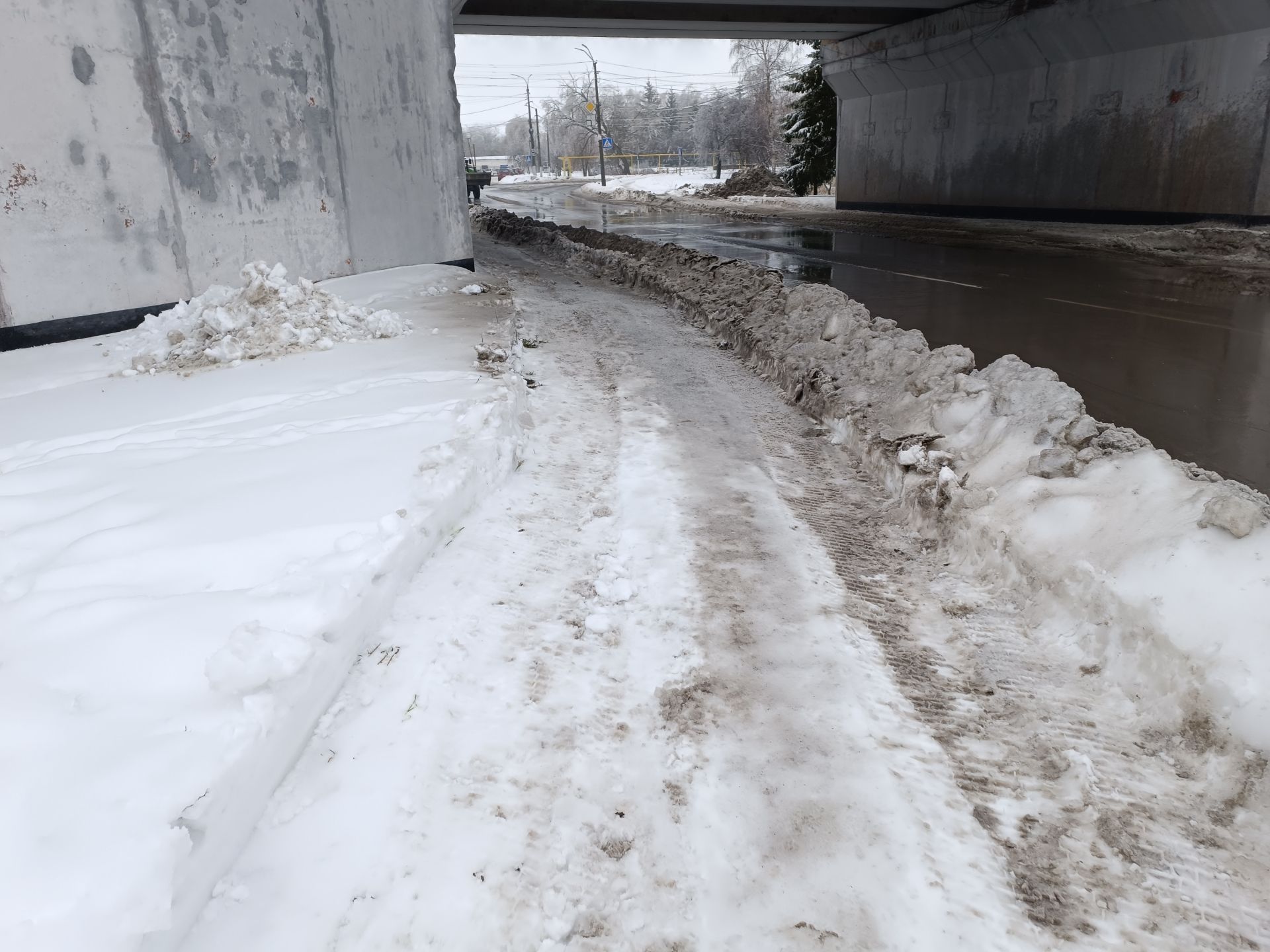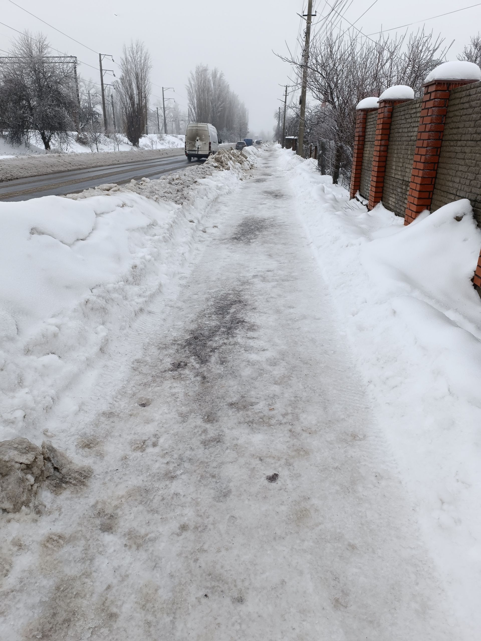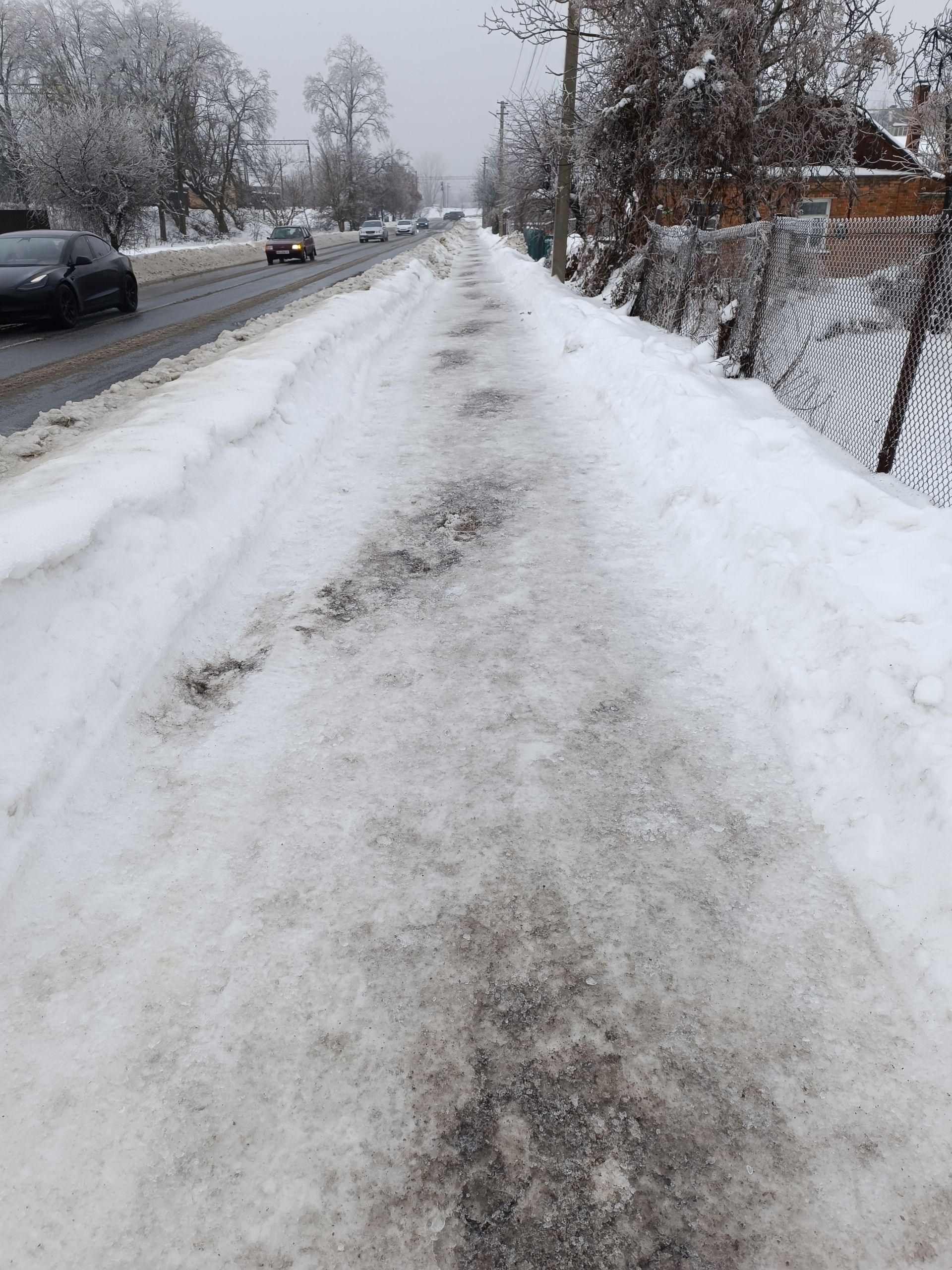 А позаяк коли розчищали сніг, на тротуарі утворилися невеличкі горбики, це все так і замерзло горбами. Ближче до переходки на автостанцію пішохідна доріжка була ще слизькою, ближче до тунелю лід почав танути швидше, тож там було легше пройти.