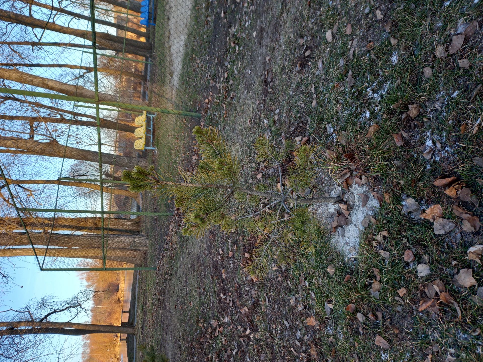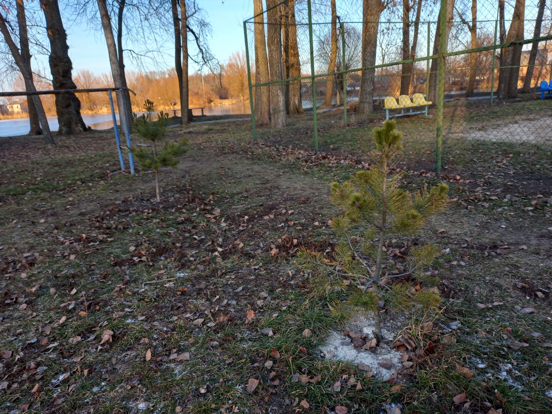 Дерева на стадіоні не лише видаляють, а й садять нові. Поруч із закритим майданчиком для гри у волейбол два невеликі саджанці сосни.