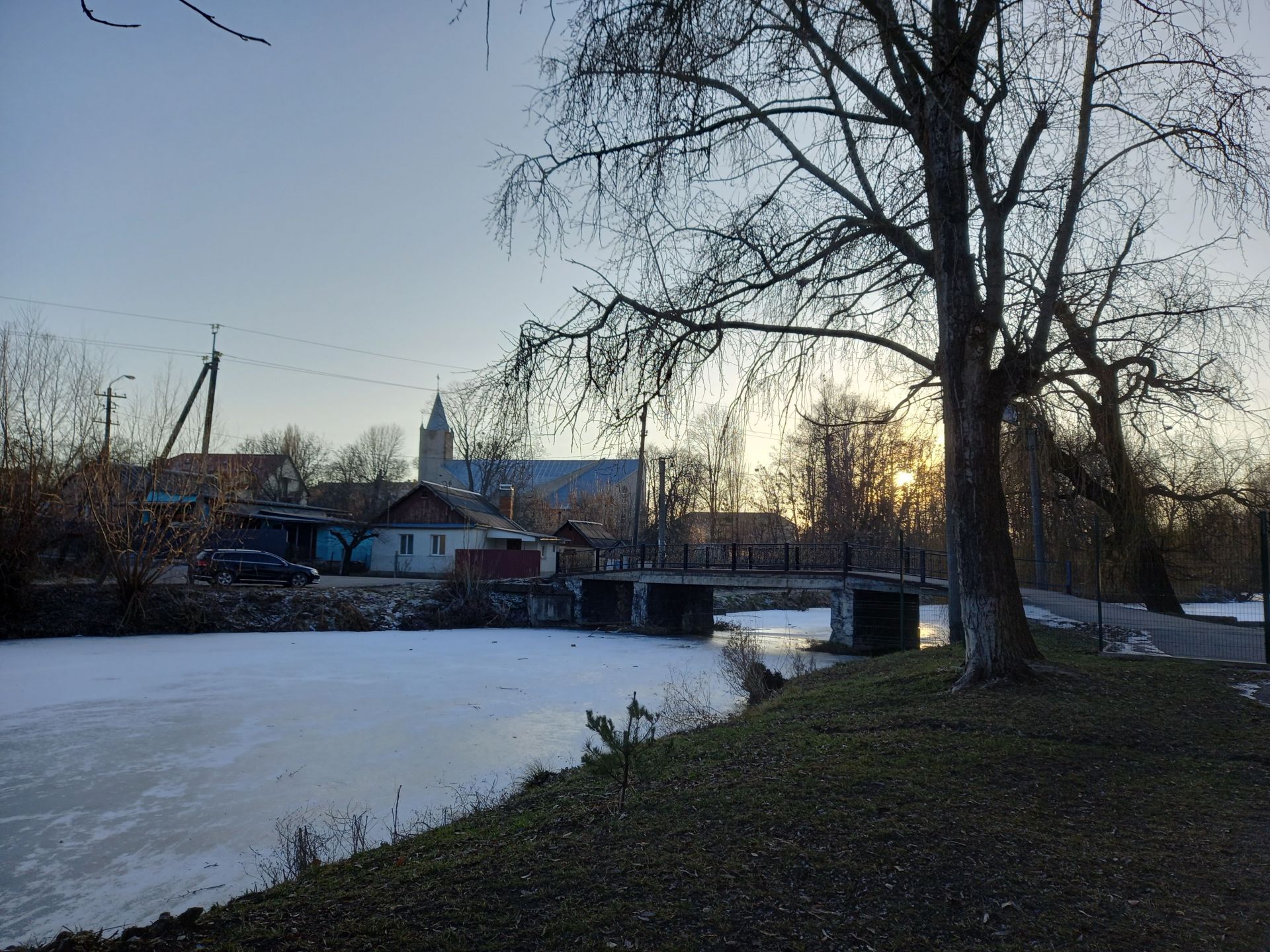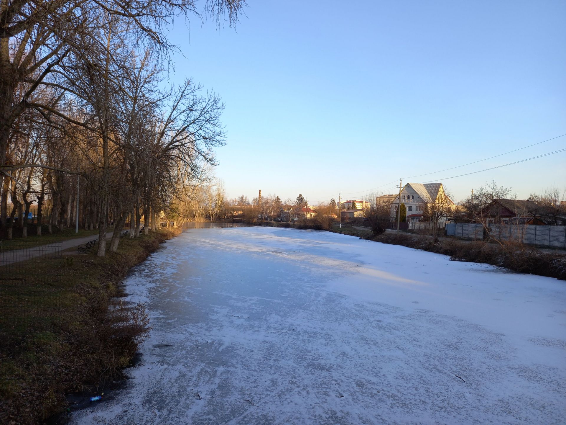 На календарі неділя, 5 січня. За вікном температура нижче нуля, та козятинчан, які полюбляють відпочивати на стадіоні це не лякає. Хоч Новий рік зустрів нас теплою погодою, а морози почалися лише ближче до вихідних, цього вистачило, щоб плесо Водокачки почало вкриватися кригою. Деякі сміливці навіть ризикнули вийти на лід. Пробуривши невеличку ополонку, ліворуч від містка у цілковитій тиші рибалить чоловік.