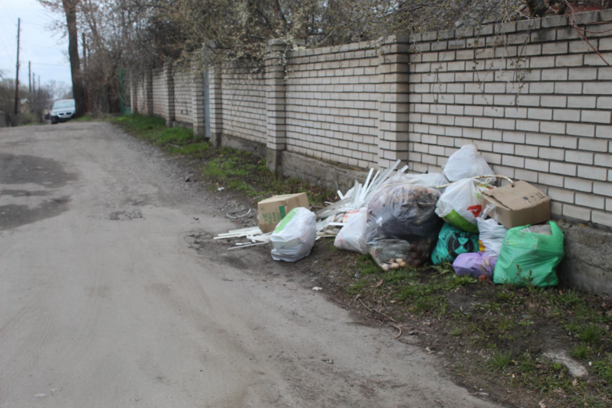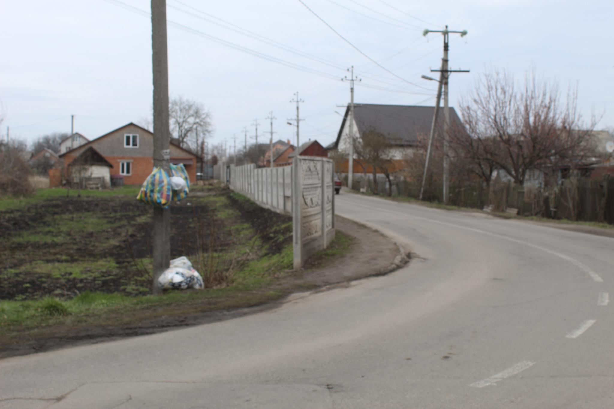 Останнє фото ми зробили в найнижчій точці вулиці Князів Острозьких. Там місцеві мешканці пакети зі сміттям підвішують на стовпі і йдучи на роботу не переживають, що їх вміст «перевірятимуть» собаки і коти.