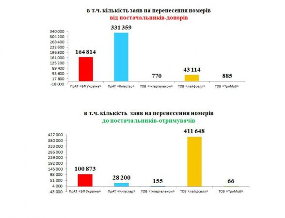 Тим часом більшість номерів від інших операторів було перенесено до lifecell. Це — 269,76 тисячі номерів. А тим часом пішли з lifecell 22,9 тисячі номерів.