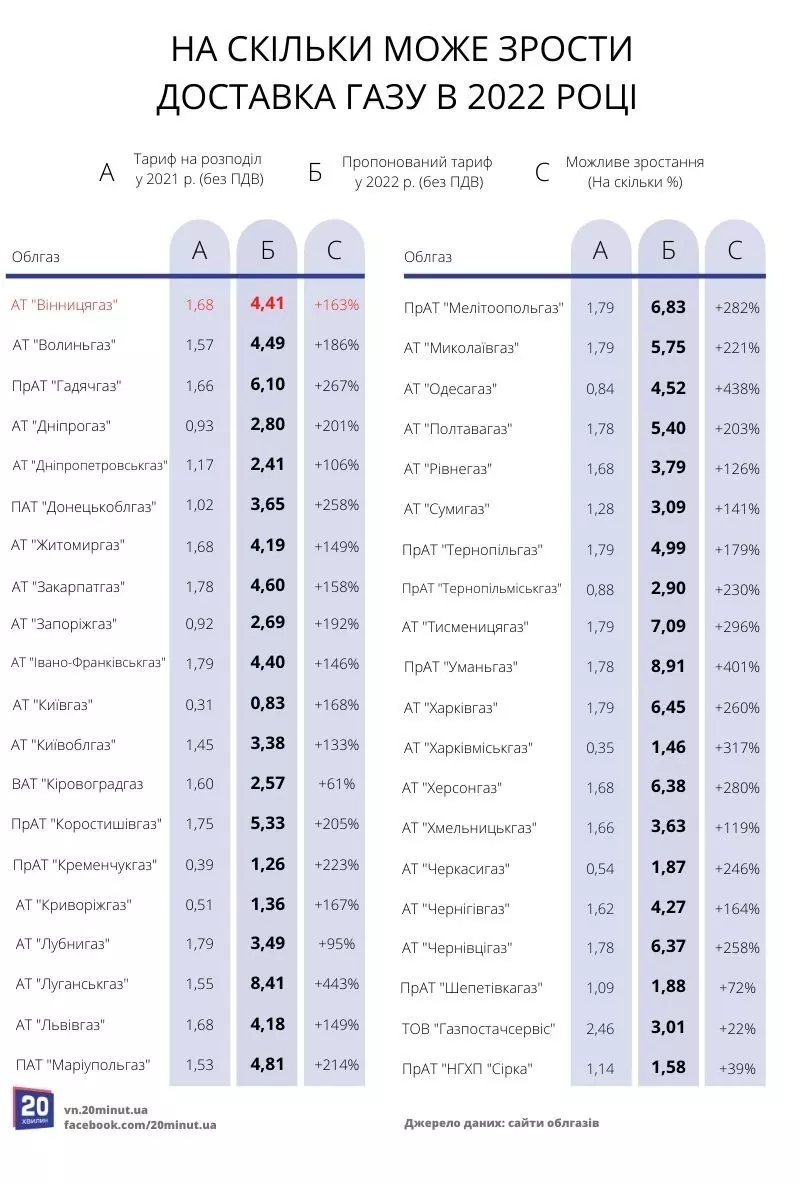 - Так, зокрема, «Вінницягаз» хоче підняття тариф на 2,6 раза! За їхніми намірами, нові розцінки почнуть діяти з наступного року.