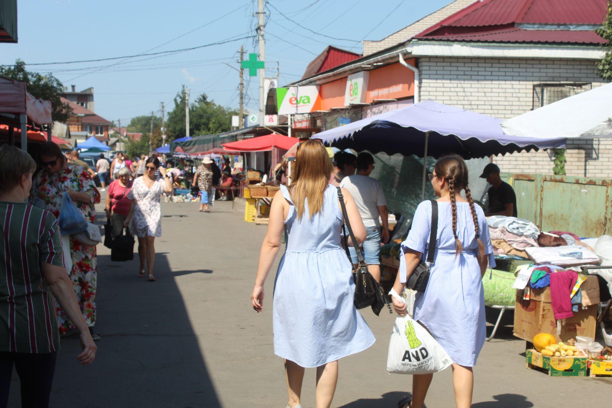 На ринку на вулиці Василя Земляка, як зазвичай, йшла торгівля. Скупчення людей ніде не було. Купували покупці всього потроху. Нас зацікавили смачні і м’ясисті помідори сорту «Яскрава клумба». Їх продавали по 40 гривень за кіло. Огірки домашні в середньому по 20 гривень за кіло, буряк з грядки — 30, стільки ж морква, кабачки — 10, баклажани тільки з поля — 18, були і по 20 і по 25 гривень за кіло. Болгарський перець привозний — 60 і той, що виростили місцеві фермери — 40, середня капуста — 35 — все в гривнях і за кілограм. Ціна кукурудзи —15 гривень за качан, гриби — 130 гривень кіло. Ожина — 20 гривень стакан, малина —20 і 40 за літрову банку. Лимони 100–120 за кілограм, виноград від 50 до 160 гривень, мед — 75 гривень за півлітра.