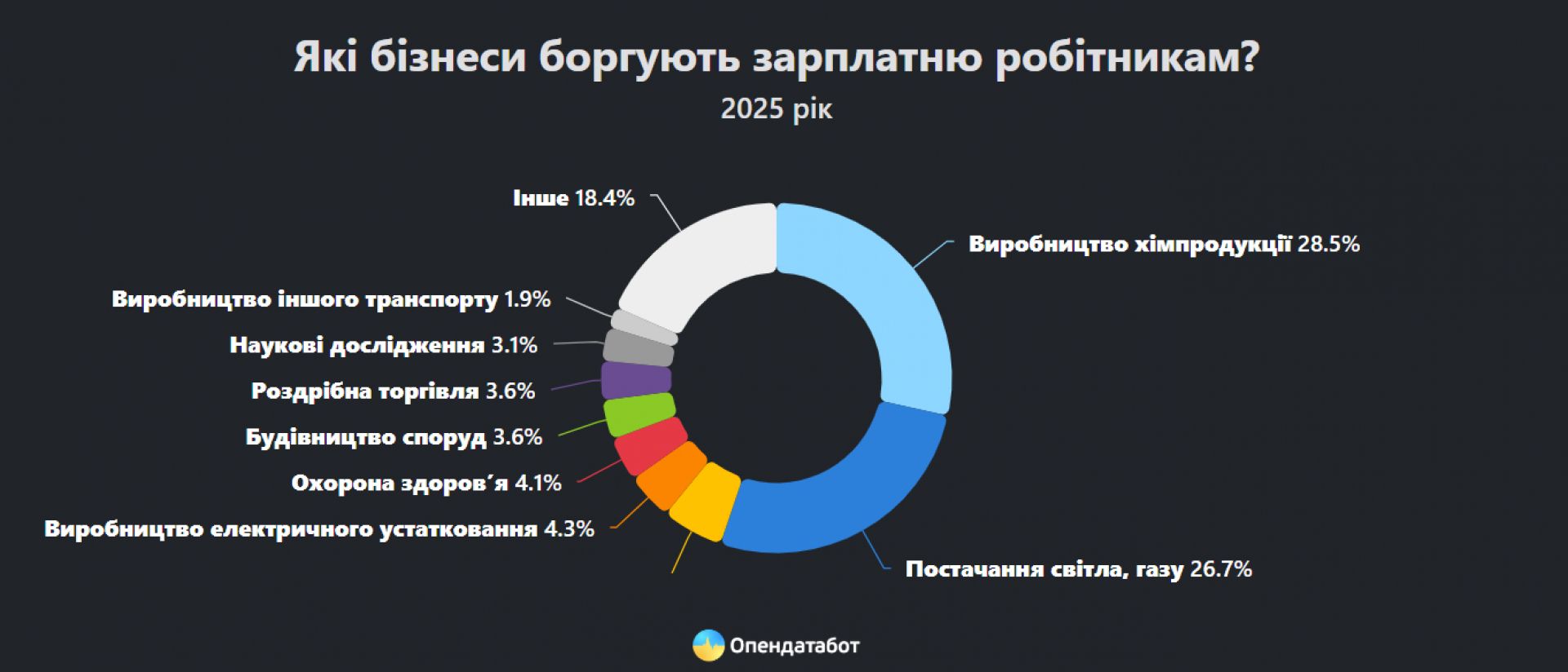 - Виробники хімічної продукції — майже 29% від усіх боргів (2,6 тис. справ).