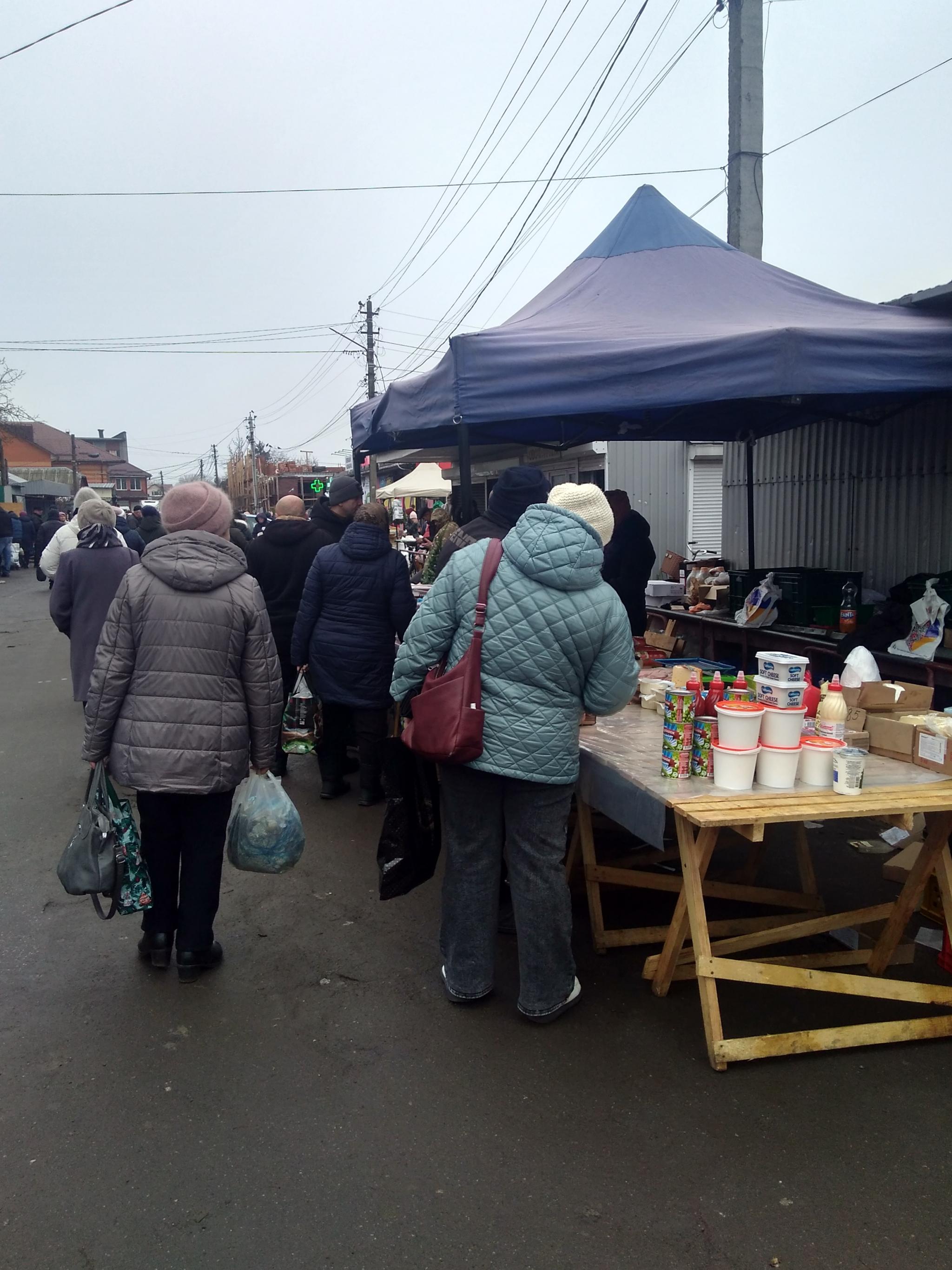 - У кінці кожного місяця ми робимо огляд цін на ринку і порівнюємо їх з попереднім місяцем. Цього разу у неділю, 21 грудня, на базарі було багатолюдно. Купували всього потроху. Найбільше скупчення людей було біля домашніх пиріжків, лотків привозного товару, риби, напівфабрикатів та кормів для тварин.