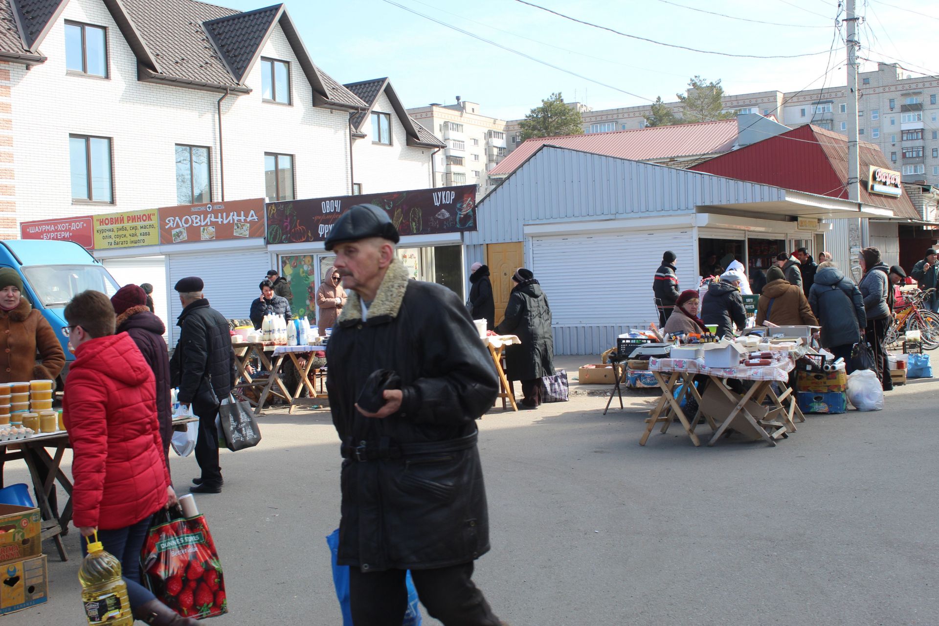 На вулиці Василя Земляка серед потенційних покупців пожвавлення. Воно й не дивно, за 23 дні війни вже мало хто звертає увагу на ковід. Торгували у «ракушках» на приватних столиках і на землі.