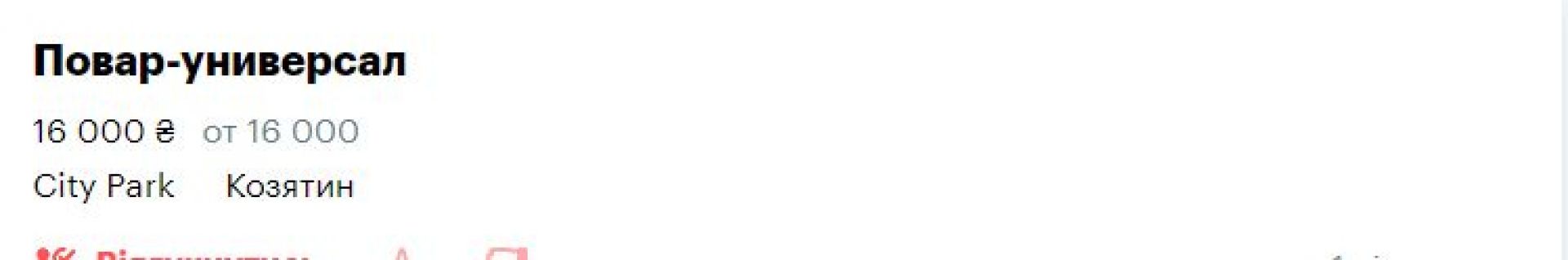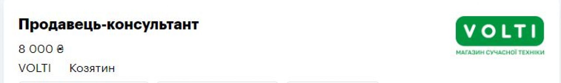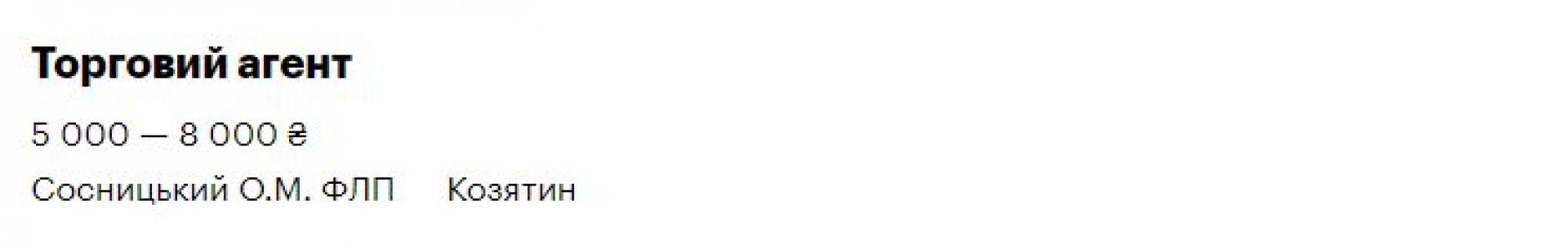 Доповнимо цей перелік вакансіями для козятинчан. На сайті rabota.ua є ще 5 вакансій. Шукають повара, торгового агента, продавця та мерчендайзера
