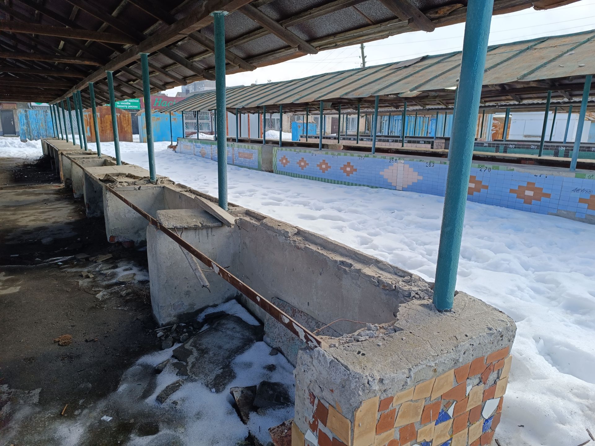 Поодинокі залізні контейнери, криті павільйони, що повільно руйнуються, де-не-де приміщення старих магазинів, на яких ще можна побачити радянські вивіски на кшталт «Промтовари» — так сьогодні виглядає Великий базар. На табличці одразу біля центрального входу вже майже стерлися літери, але ще можна прочитати: