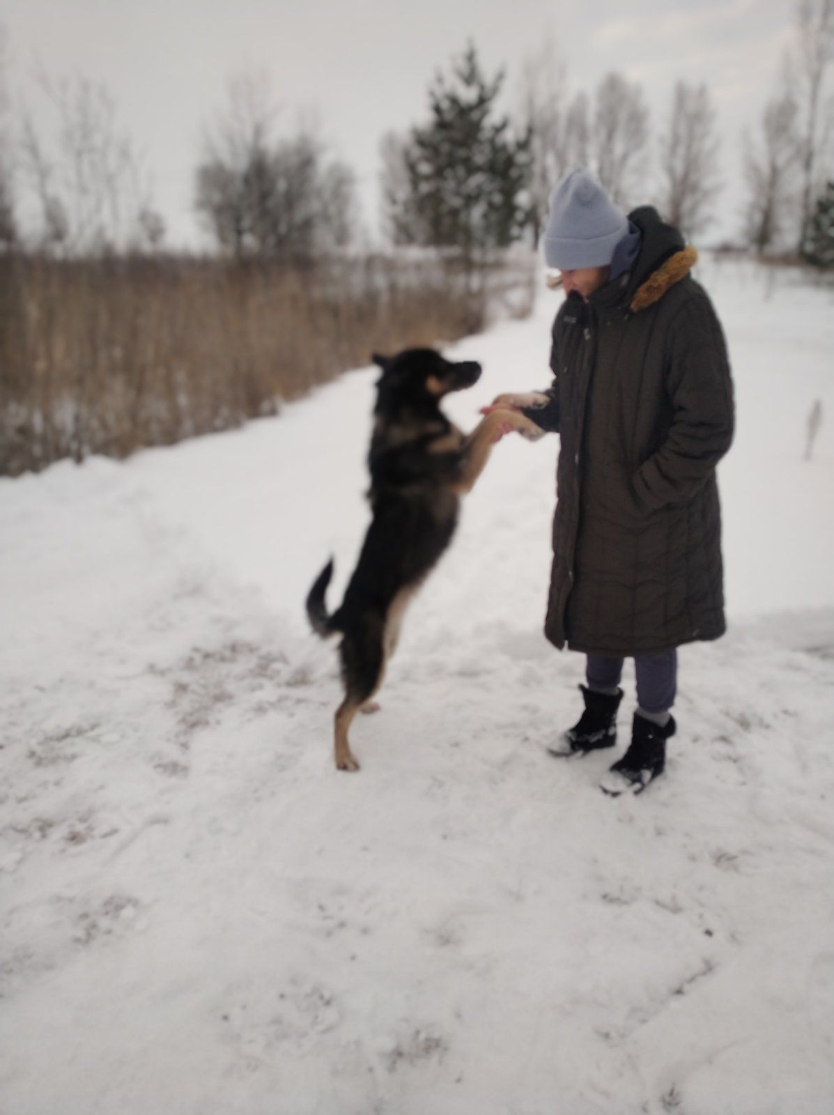 — До мене прибилася вівчарка. Вона почала Вернигородком бігати десь з місяць тому. Спочатку до рук не йшла, потім я її погодував, то вона стала сидіти у мене на містку і ніби охороняє його. Вона навчена, виконує команди. Даю команду сидіти — сидить, дати лапу — дає лапу. Думав, що це у неї так випадково вийшло, повторив команду — знов дала лапу. Разом з тим вона сильно налякана, береш палку з землі і вона відразу в сторону відходить.