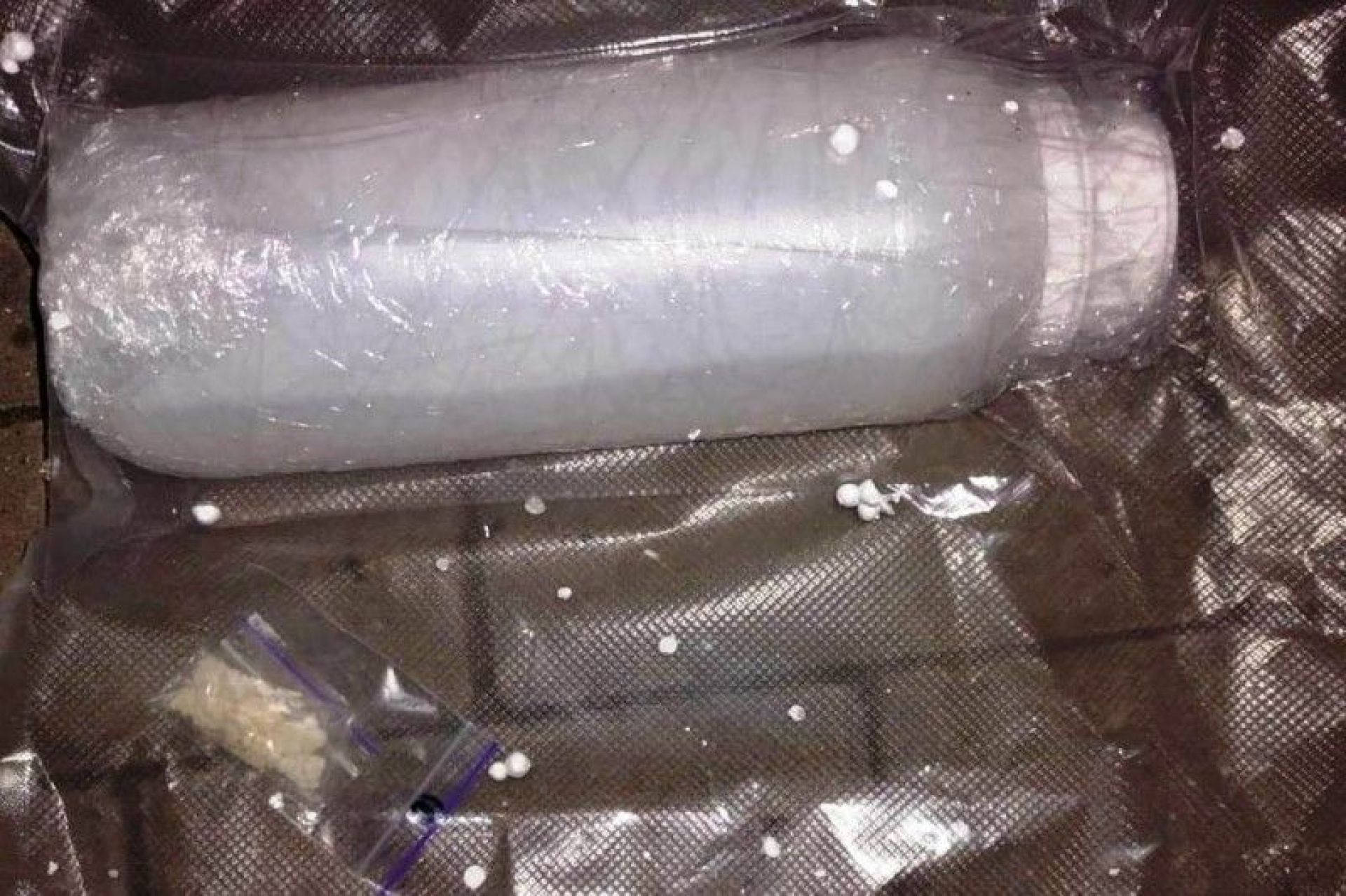 - Під час огляду його речей оперативники виявили майже 100 грамів наркотичної солі та бутилу з кислотою, яка використовується під час виготовлення синтетичних наркотиків.