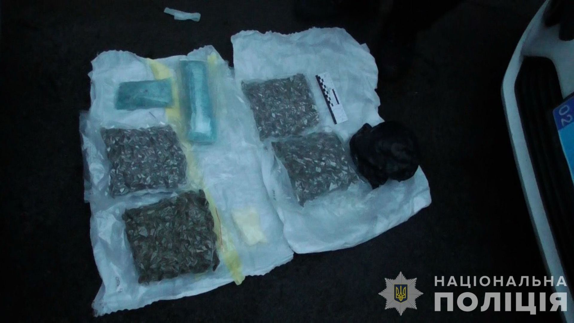 В результаті обшуку автомобіля правоохоронці вилучили два кілограми канабісу, 880 грам «PVP-солі» та 100 грам метамфетаміну, а також гроші, мобільні телефони та сім-картки. Оцінюється, що вартість цих наркотиків на «чорному» ринку складає приблизно три мільйони гривень.