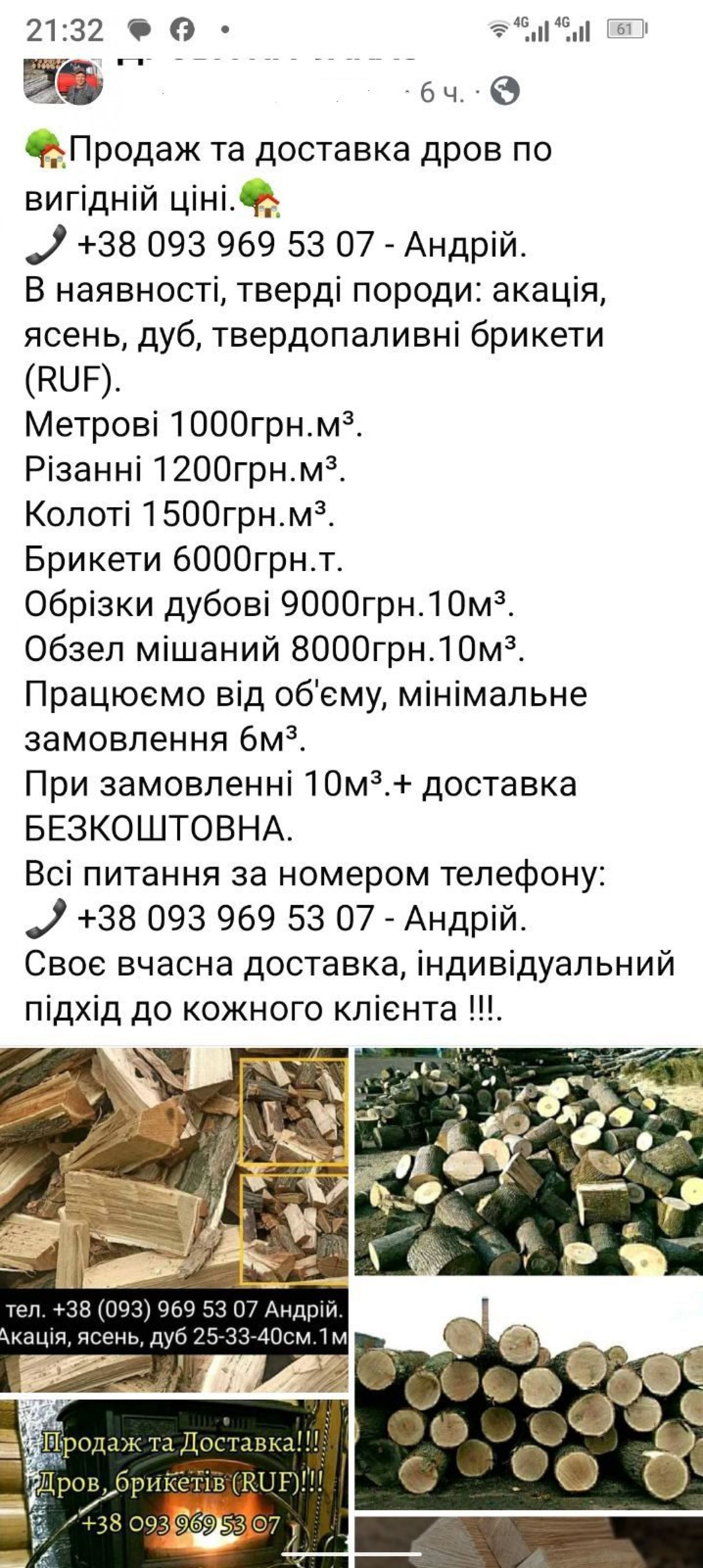 Продаж дров за вигідною ціною, безкоштовною доставкою та іншими акційними пропозиціями шквально з’являються у період підвищеного їх попиту, настанням холодів. Як опалювати помешкання, кожен обирає відповідно до своїх можливостей. Дрова на сьогодні є реальною альтернативою газовому та електро опаленню. Обігріватись ними надійніше та вигідніше. Не потрібні дозволи і погодження. Ще одна суттєва перевага — їх тепловіддача. Крім того, зола є чудовим природним добривом для грядок та городів. Однак з придбанням дров для опалення виникають деякі труднощі. Як знайти якісну деревину з великою тепловіддачею та адекватною ціною? І тут у пошуку кращої пропозиції потрапляємо в тенета широкого загалу продавців палива. Більшість цих пропозицій є звичайним шахрайством. Недолугість законодавства, відкриває широкий простір для злочинців. А останні, в свою чергу, гарно підготовлені, володіють інформацією, де, що і по чому, а головне — вміють спілкуватись і гарно пропонувати, надаючи привабливі пропозиції.