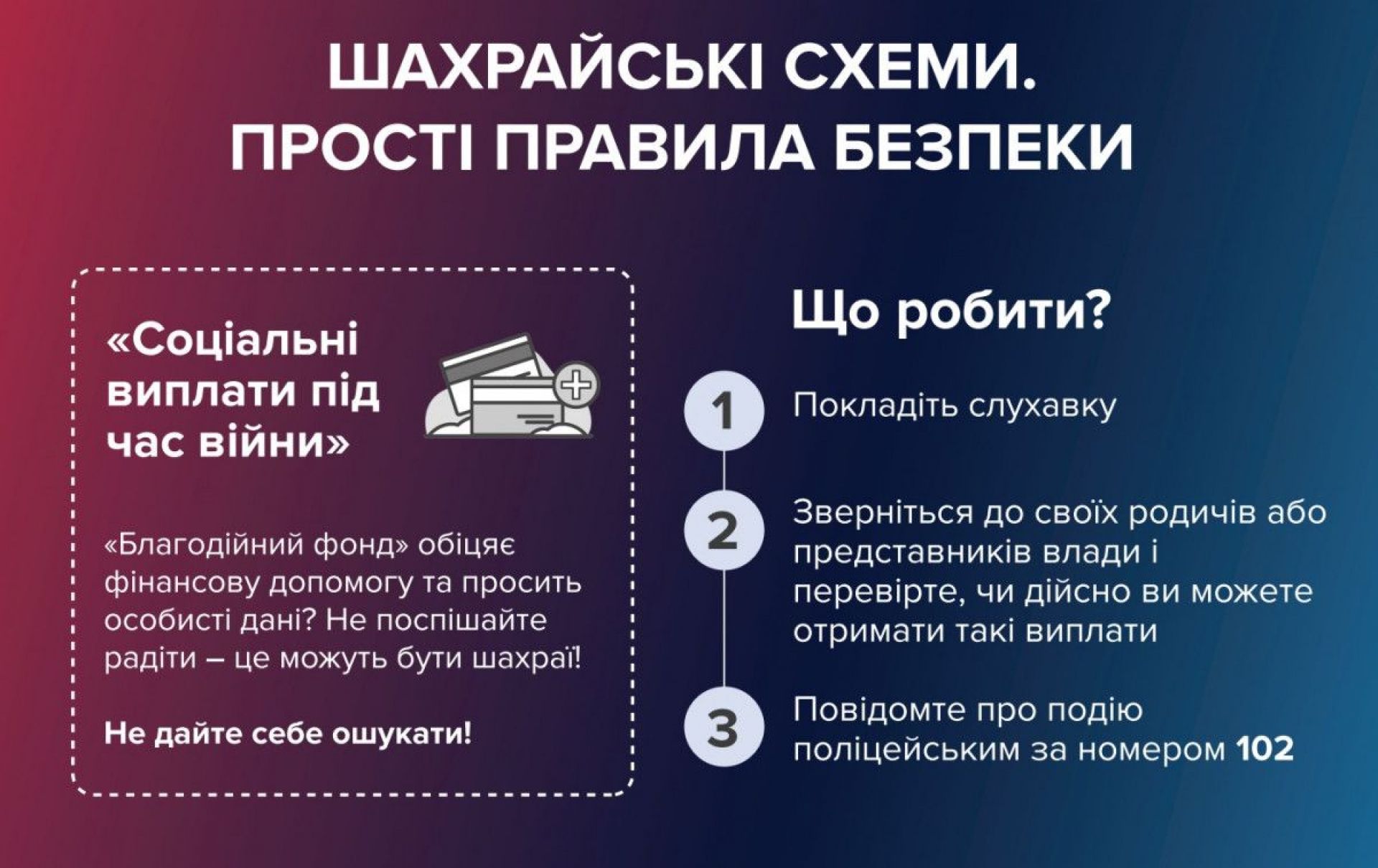 Останнім часом цю категорію злочинів взяли на особливий контроль. Постійно проводять обшуки у місцях позбавлення волі. Люди, які нічим не зайняті, сидять дзвонять. А є ще і цивільні, різноманітні кол-центри, які також телефонують і обманюють людей, при цьому заробляють на них великі гроші. Ми розмістили у відділеннях « Укрпошти» і «Ощадбанку» буклети, щоб не люди не перекидали кошти, не слухати шахраїв, не давати їм свої персональні дані, ніякі коди підтвердження.