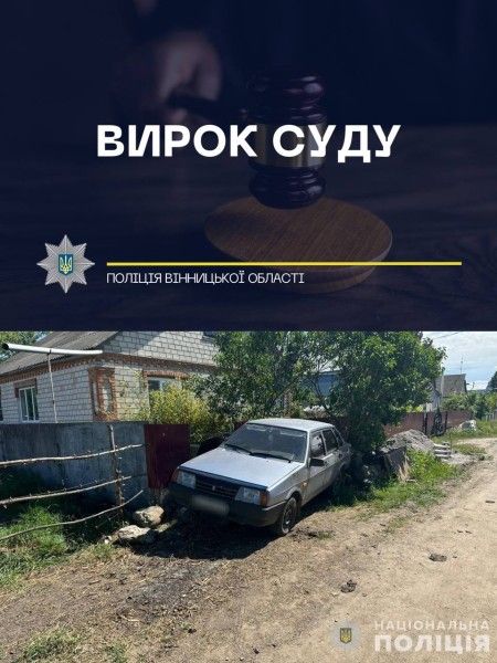 — На підставі зібраних слідством доказів, суд першої інстанції визнав фігуранта винуватим у вчиненні злочину, передбаченого ч. 2 ст. 289 (Незаконне заволодіння транспортним засобом) Кримінального кодексу України, та призначив йому покарання у вигляді 6 років позбавлення волі, — повідомляє поліція Вінницької області