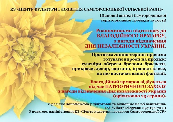 - Культура Козятинської Громади, Бродецький будинок культури та Самгородоцький центр культури і дозвілля опублікували анонси виставок та заходів, які відбудуться до свята