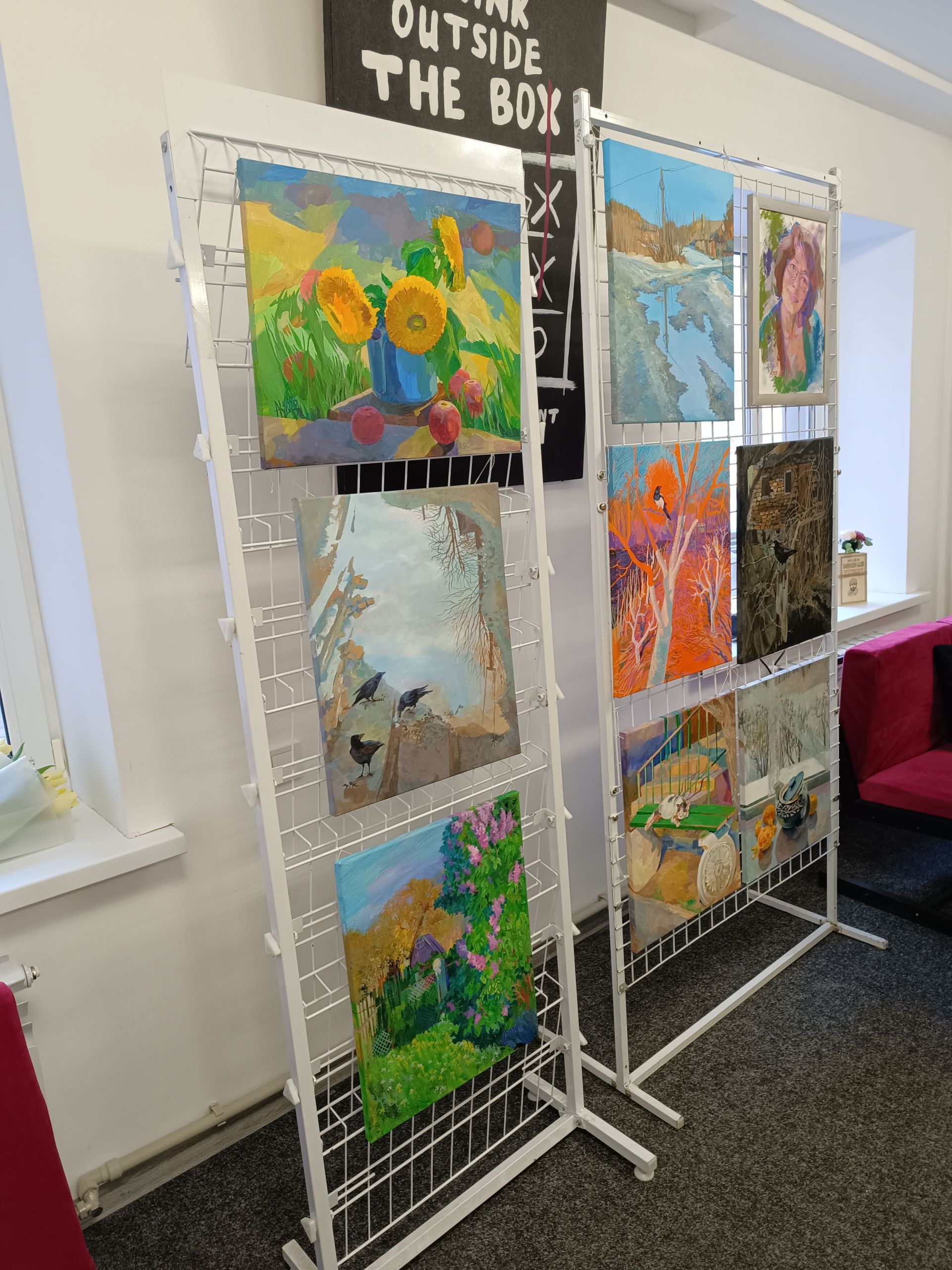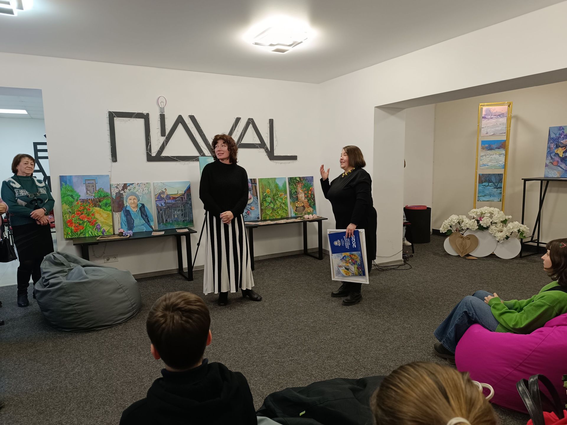 - Свої роботи мисткиня презентувала на виставці, яку відкрили у молодіжному просторі «PidVal»