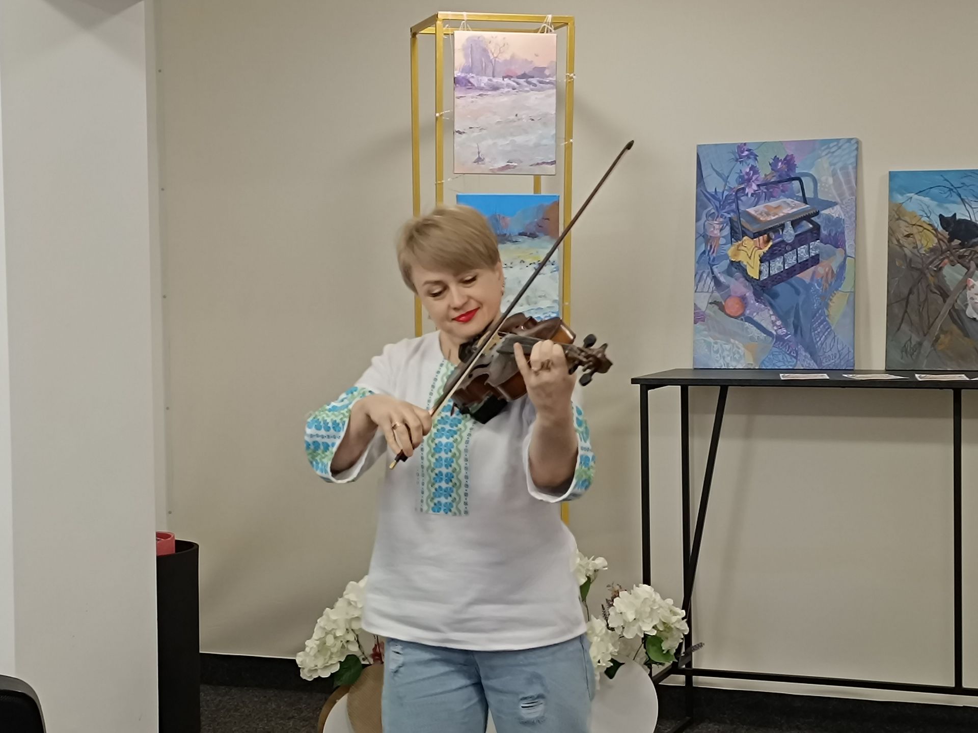 А святкову атмосферу створили Людмила Баюк, яка зіграла на скрипці «Черемшину», та заслужена артистка естрадного мистецтва України Олена Пантєлєєва, яка заспівала авторську пісню «Намалюй».