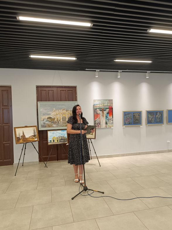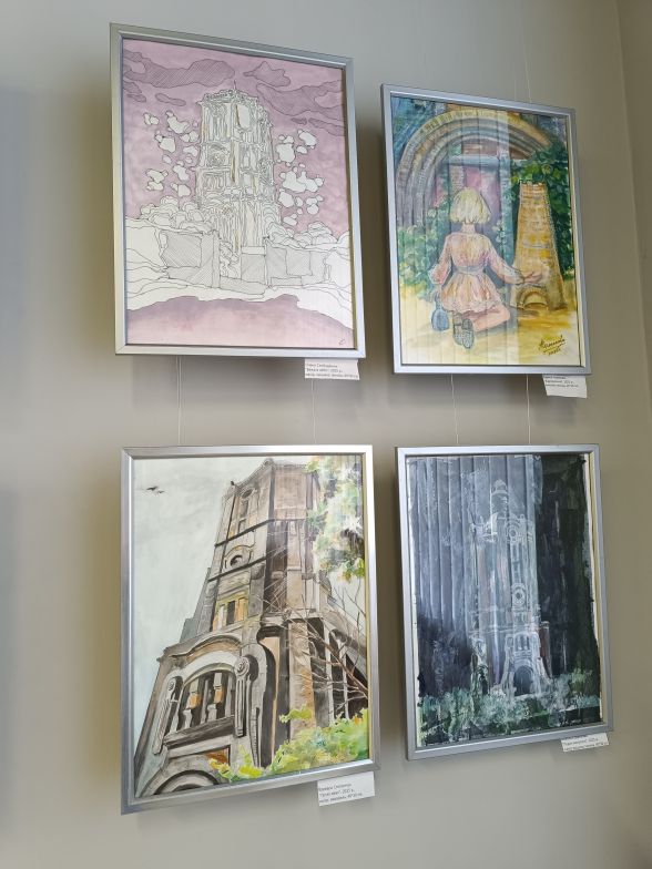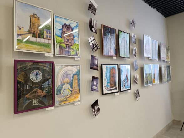 — Все почалося з імпровізованої екскурсії на початку літа до водонапірної вежі, — каже ведуча Ольга Безпалько. — Спочатку це були яскраві враження і фото на телефоні, а ще більше післясмак, гіркий від того, що це шедевр архітектури, який мав суто технічне завдання, і він, на превеликий жаль, поступово руйнується, та солодкий, від того, які перспективи має ця вежа та цінність для нашого міста. Все це наші художники передали у своїх роботах.