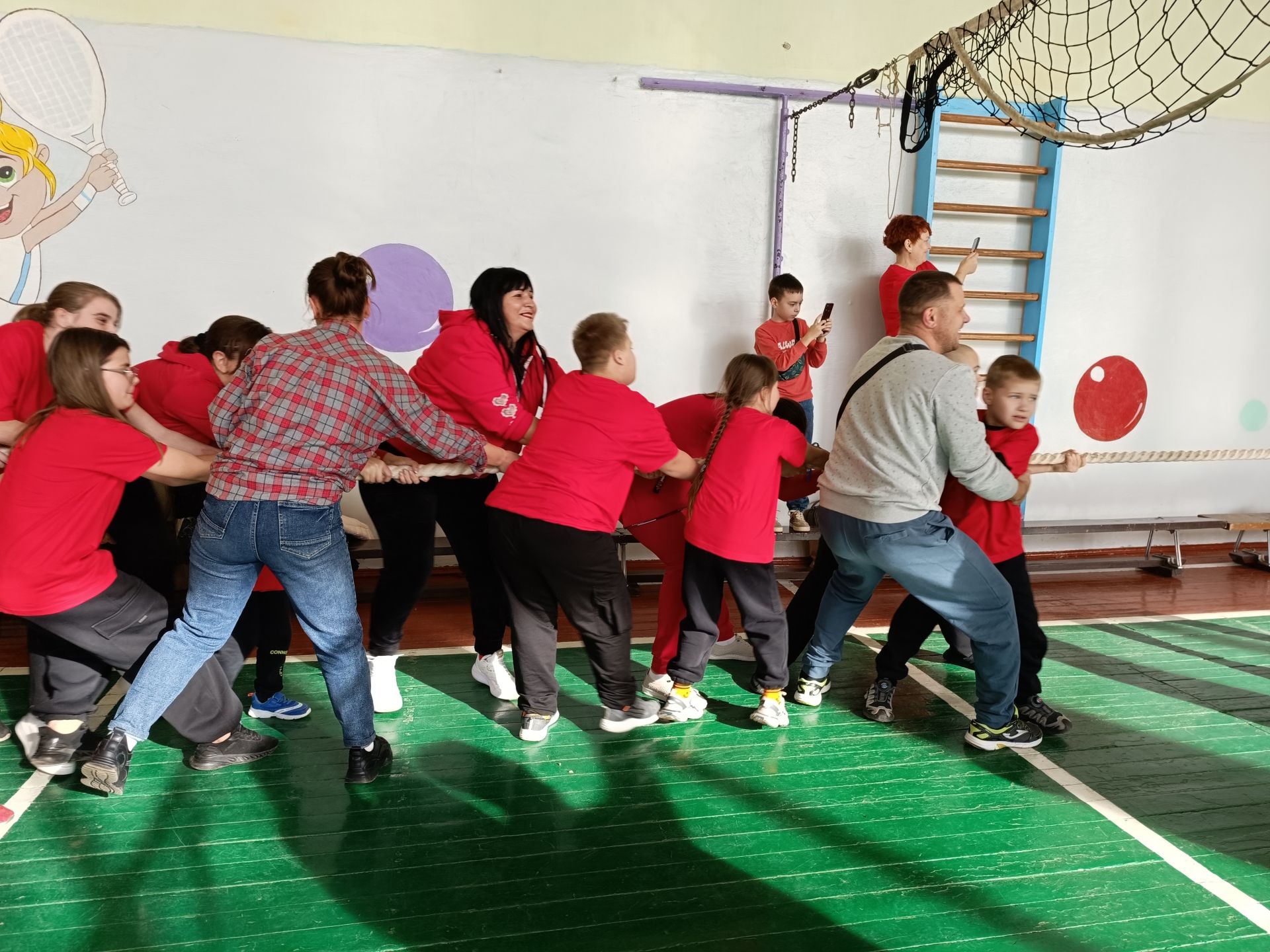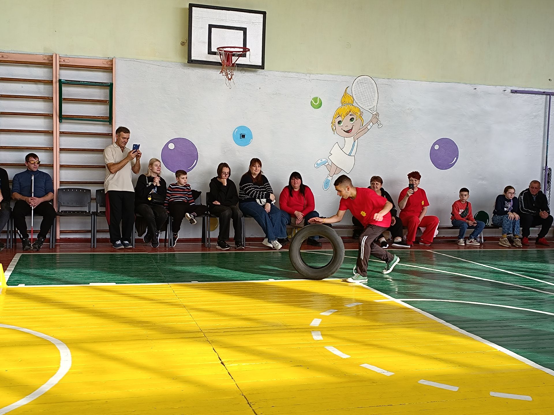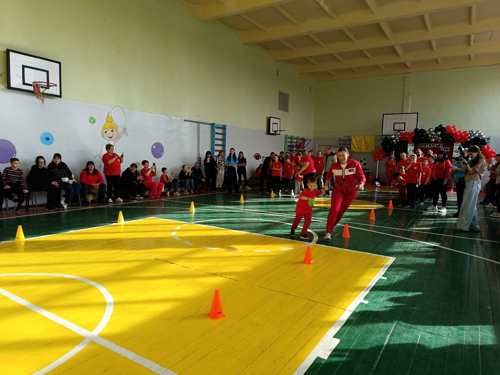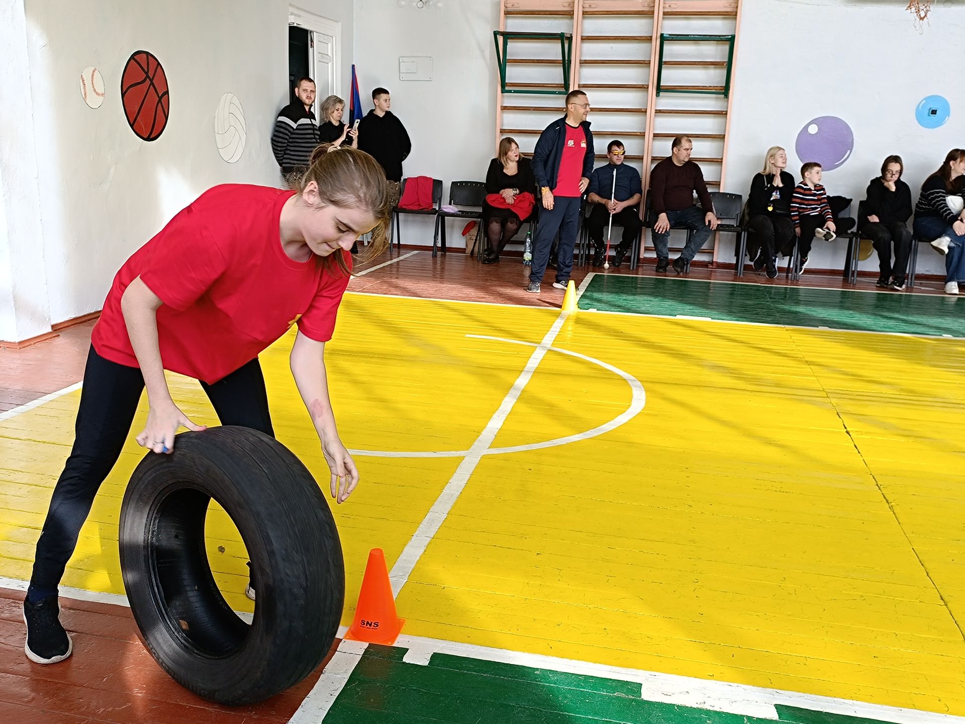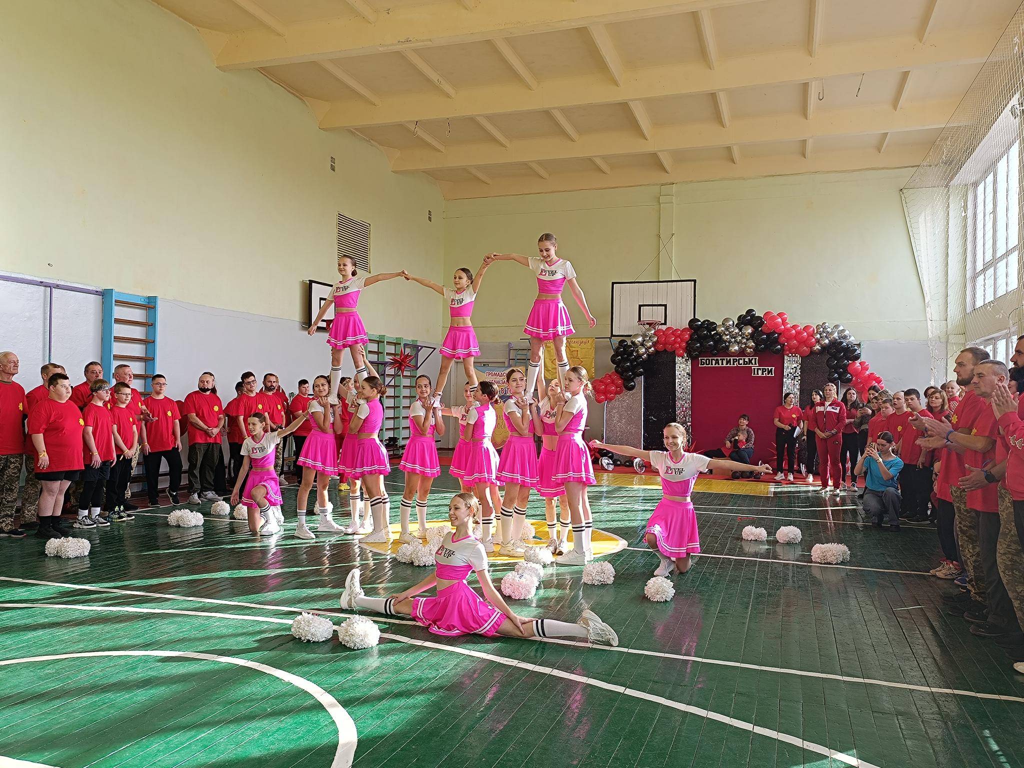 Головний суддя змагань, вчитель фізкультури опорного ліцею Віктор Стадник пояснює правила першого завдання: оббігти фішки та передати естафету наступному учаснику. Бігтимуть діти й ветерани не з пустими руками: «Залізні серця» отримують синій кубик, а «Воїни світла» — зелений. За командою судді учасники стартують. Наймолодшим і тим, кому важко бігти, допомагають капітани, батьки та ветерани. Першими естафету завершили «Залізні серця».
