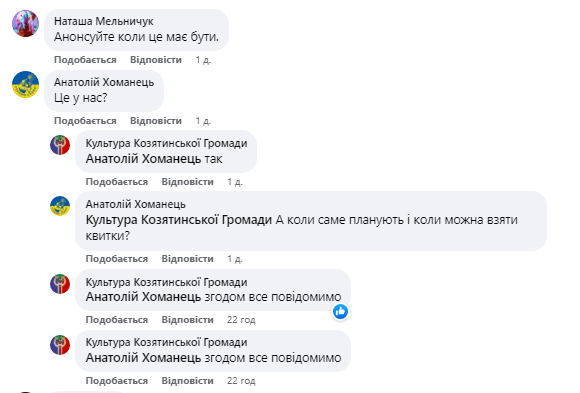 Заходи анонсувала Культура Козятинської громади. Щоправда наразі відомо лише про День вистав — 4 серпня. Деталі про ціну квитка та де його можна придбати обіцяють повідомити згодом