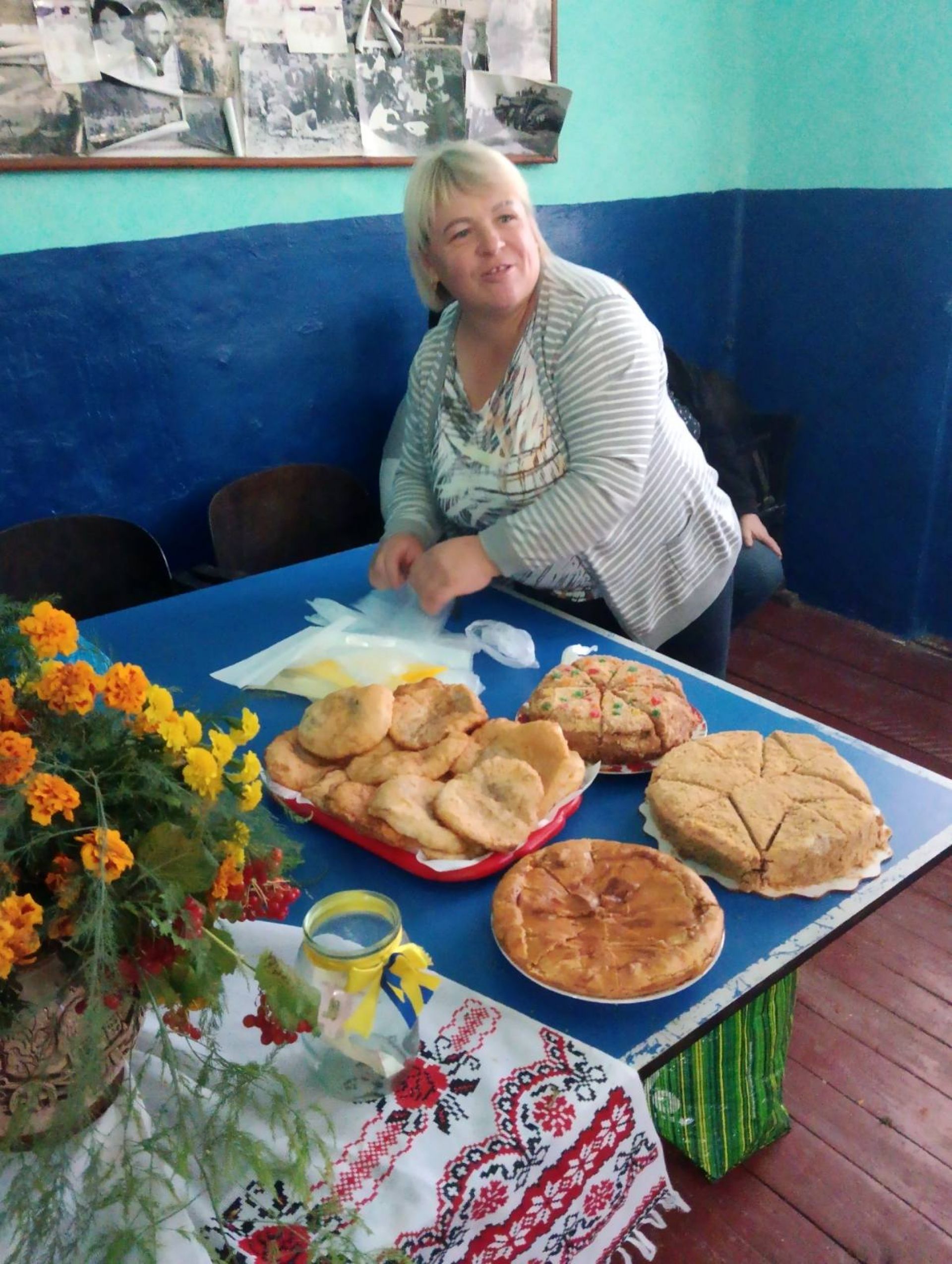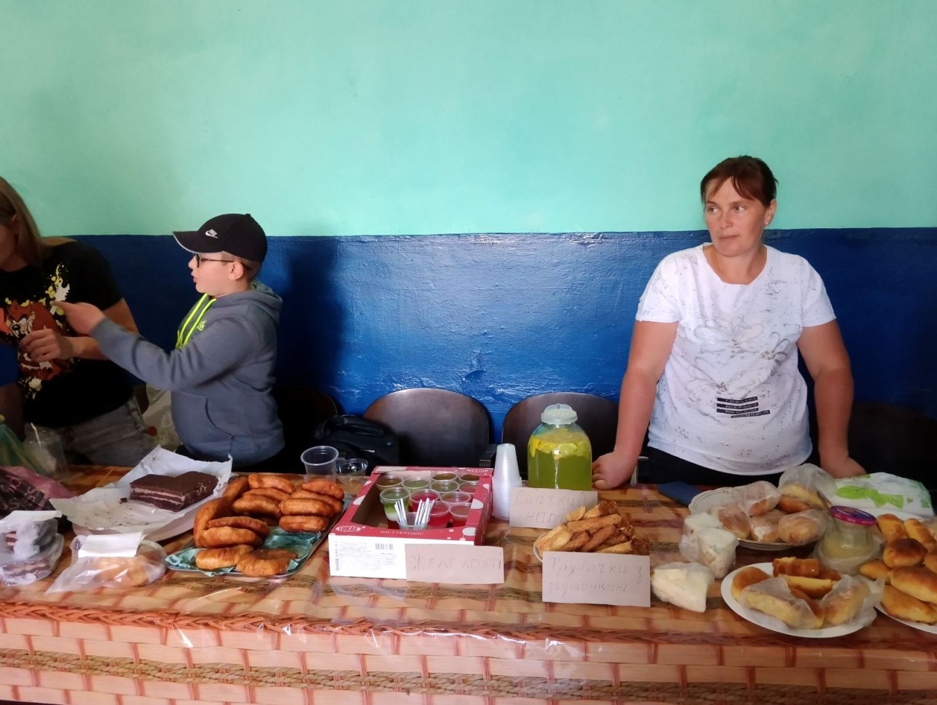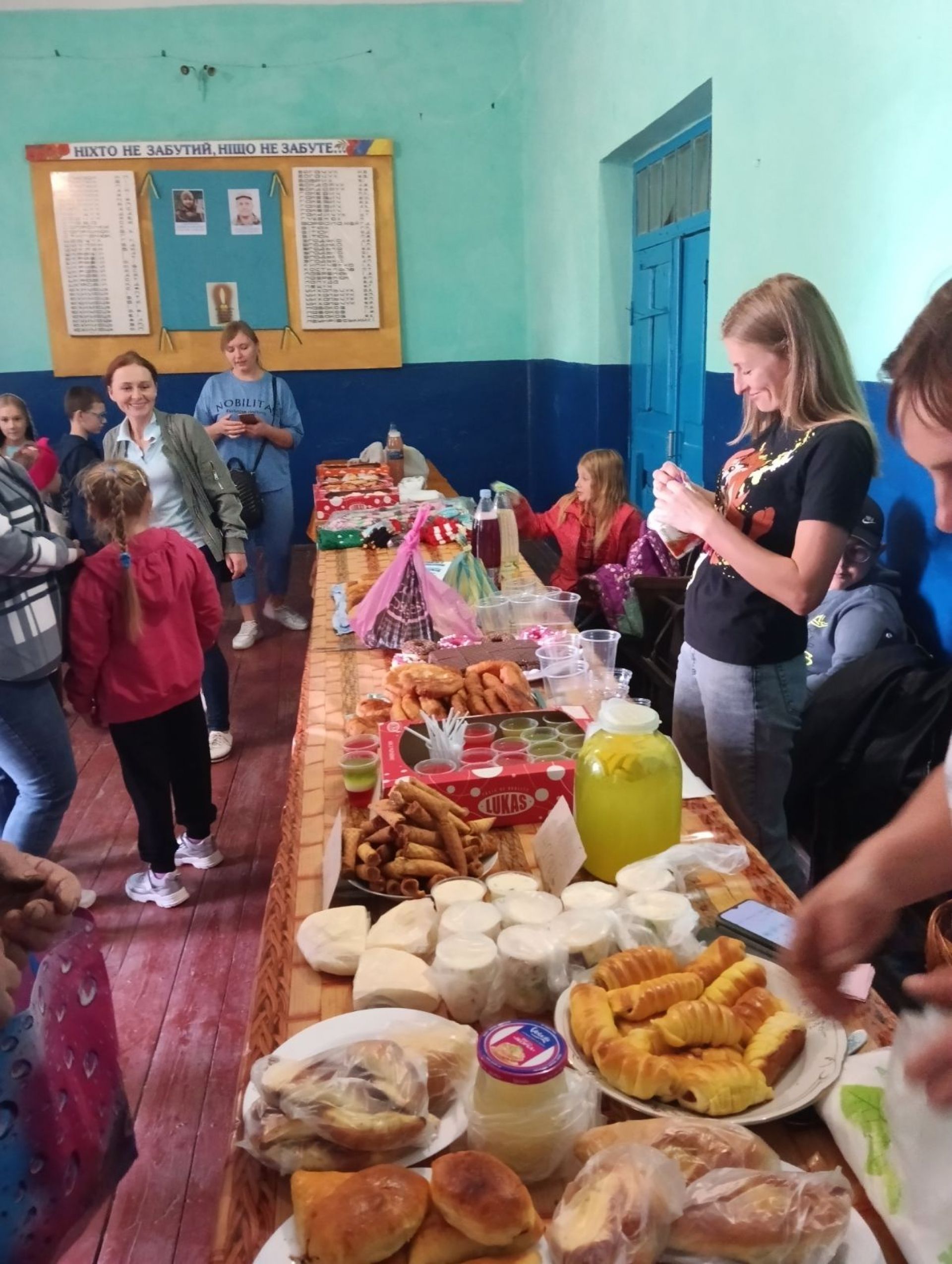 Пахло домашньою випічкою, компотами та юшкою. Місцеві господині постаралися на славу — понапікали пирогів, солодощів, прикрасили все в українському стилі, з вишитими рушниками, квітами та калиною. Кожен міг знайти щось собі до душі.