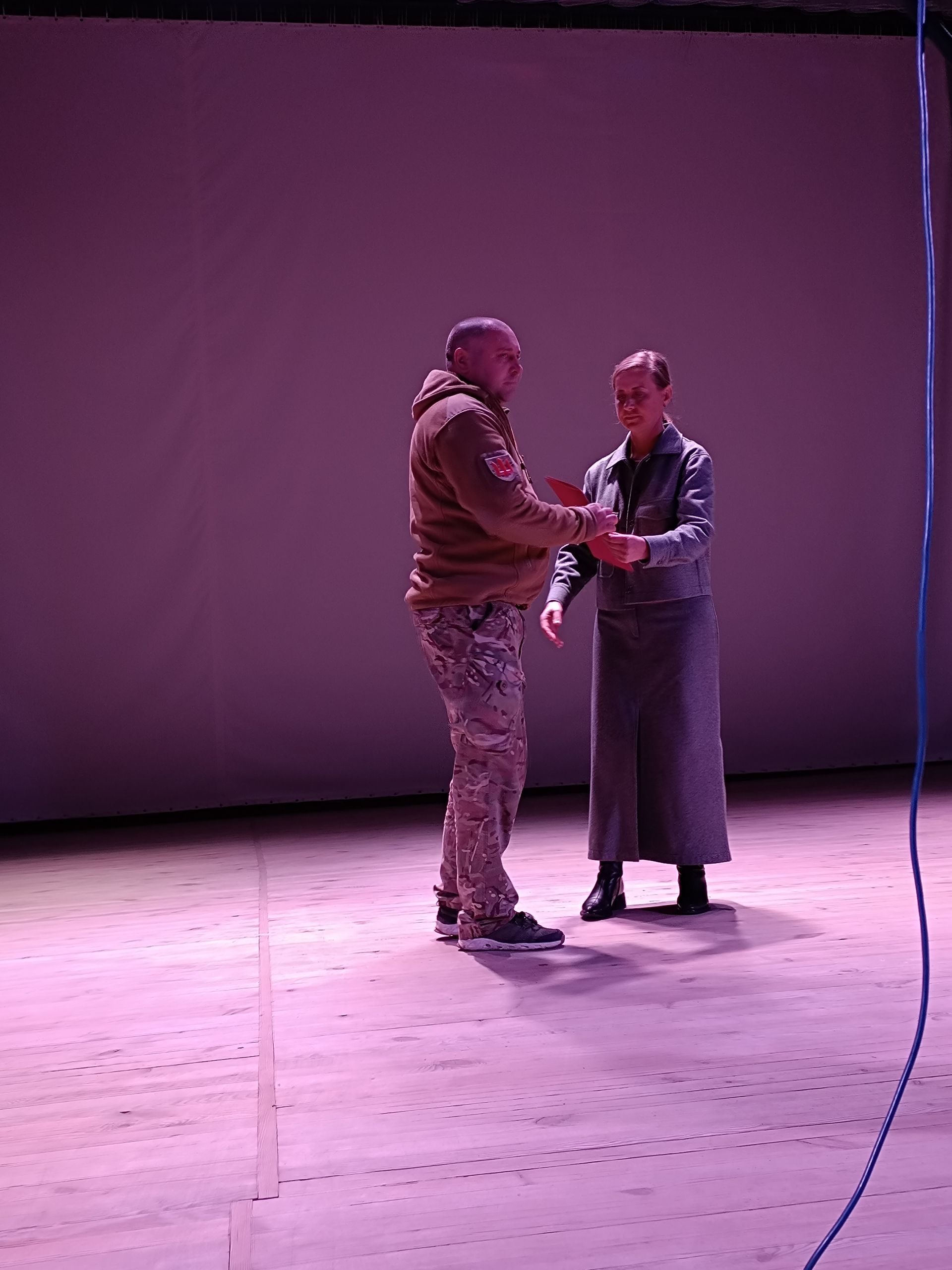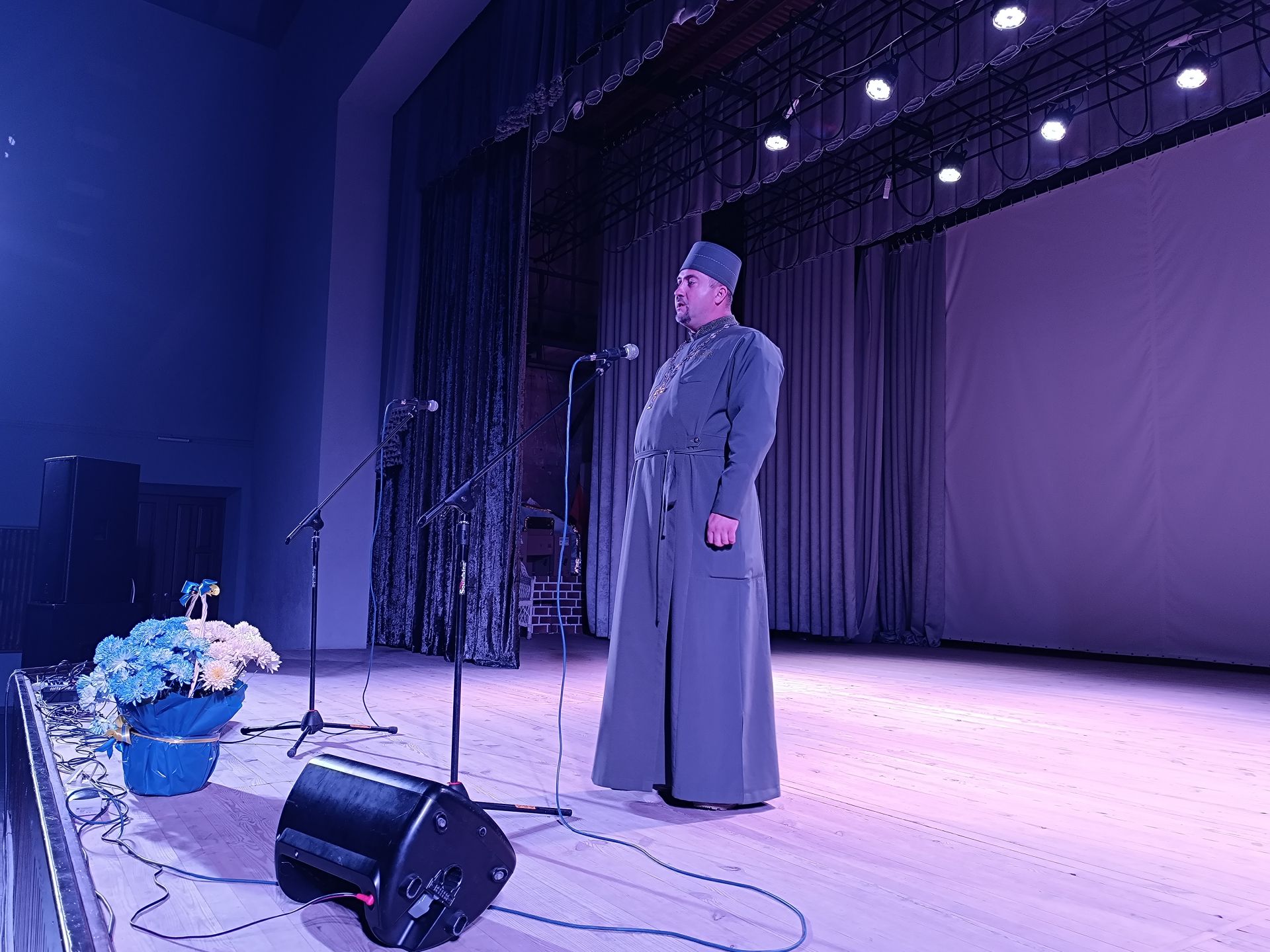 — Сьогоднішнє свято в православній церкві — свято Покрови Пресвятої Богородиці. Дуже символічно, що в перші роки християнства наші князі обрали Богородицю заступницею спочатку війська Київської Русі, потім — війська козацького, а зараз ми маємо її заступницею війська українського, війська, яке бореться, не здається і яке є тими титанами, які стоять попри все, бо шляху назад немає, — сказав капелан і запросив присутніх у залі доєднатися до молитви.