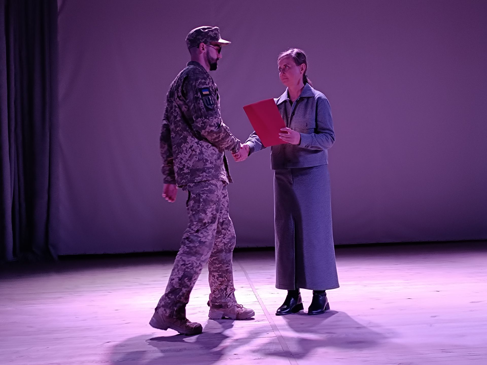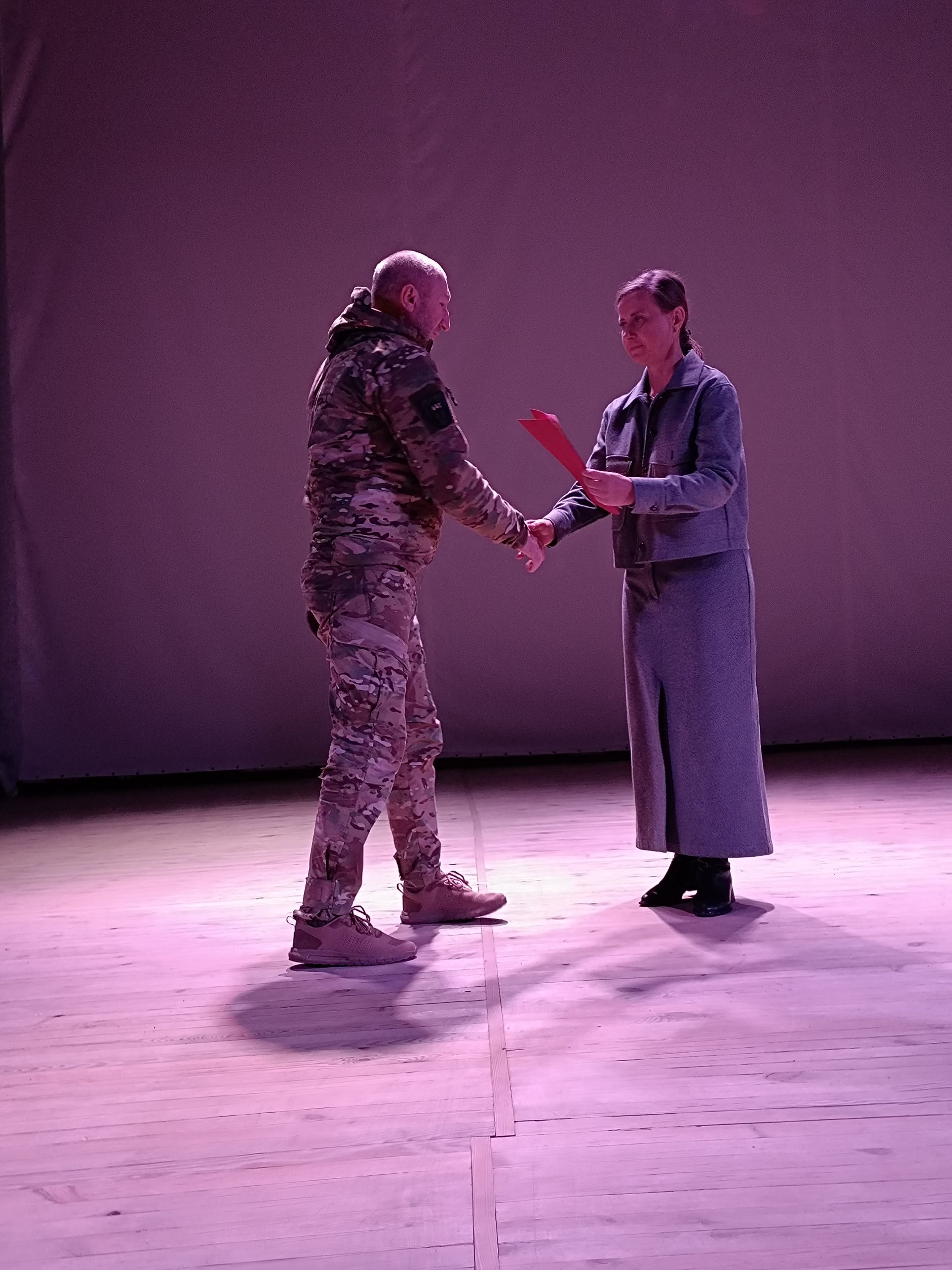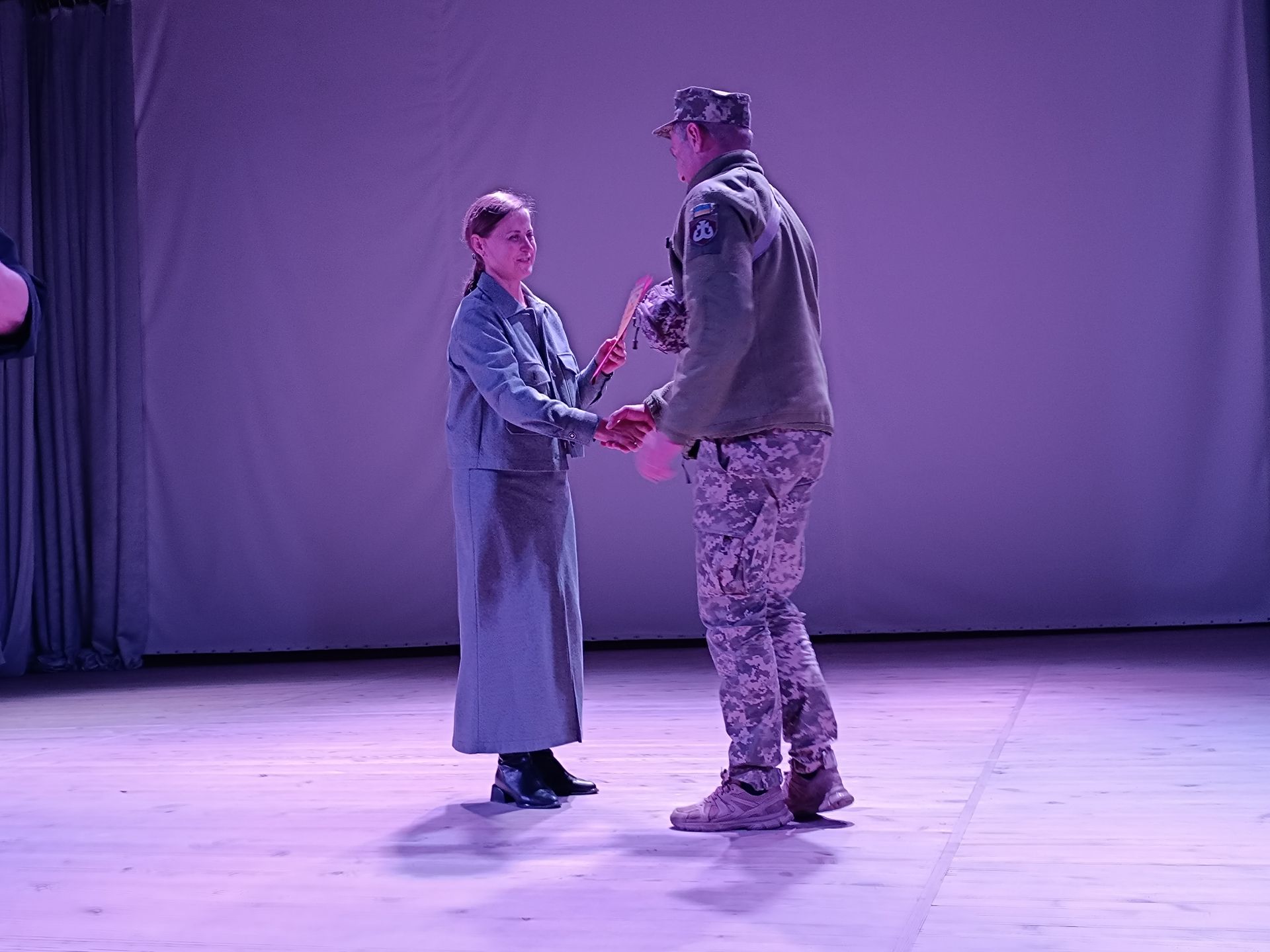 По завершенню спільної молитви на сцену вийшов вокальний ансамбль «Струни серця». По тому взяла слово виконуюча обов’язки міського голови, секретар Козятинської міської ради Ірина Репало. Рідним загиблих Героїв вручили нагрудні знаки міської ради «За героїзм та патріотизм», якими посмертно нагородили полеглих захисників. Також військовослужбовців різних бойових підрозділів нагородили почесними відзнаками Козятинської міської ради «За героїзм та патріотизм», грамотами та матеріальними винагородами.