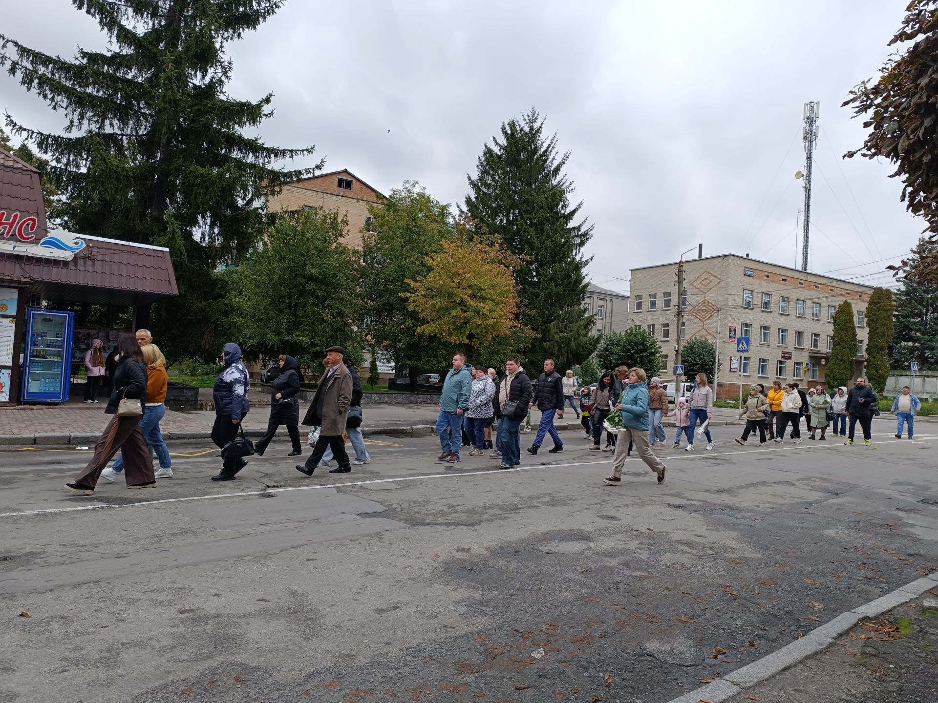 Після церемонії нагородження усі колоною рушили до пам’ятного знаку загиблим Героям і поклали квіти до пам’ятника та до Дошки пам’яті.