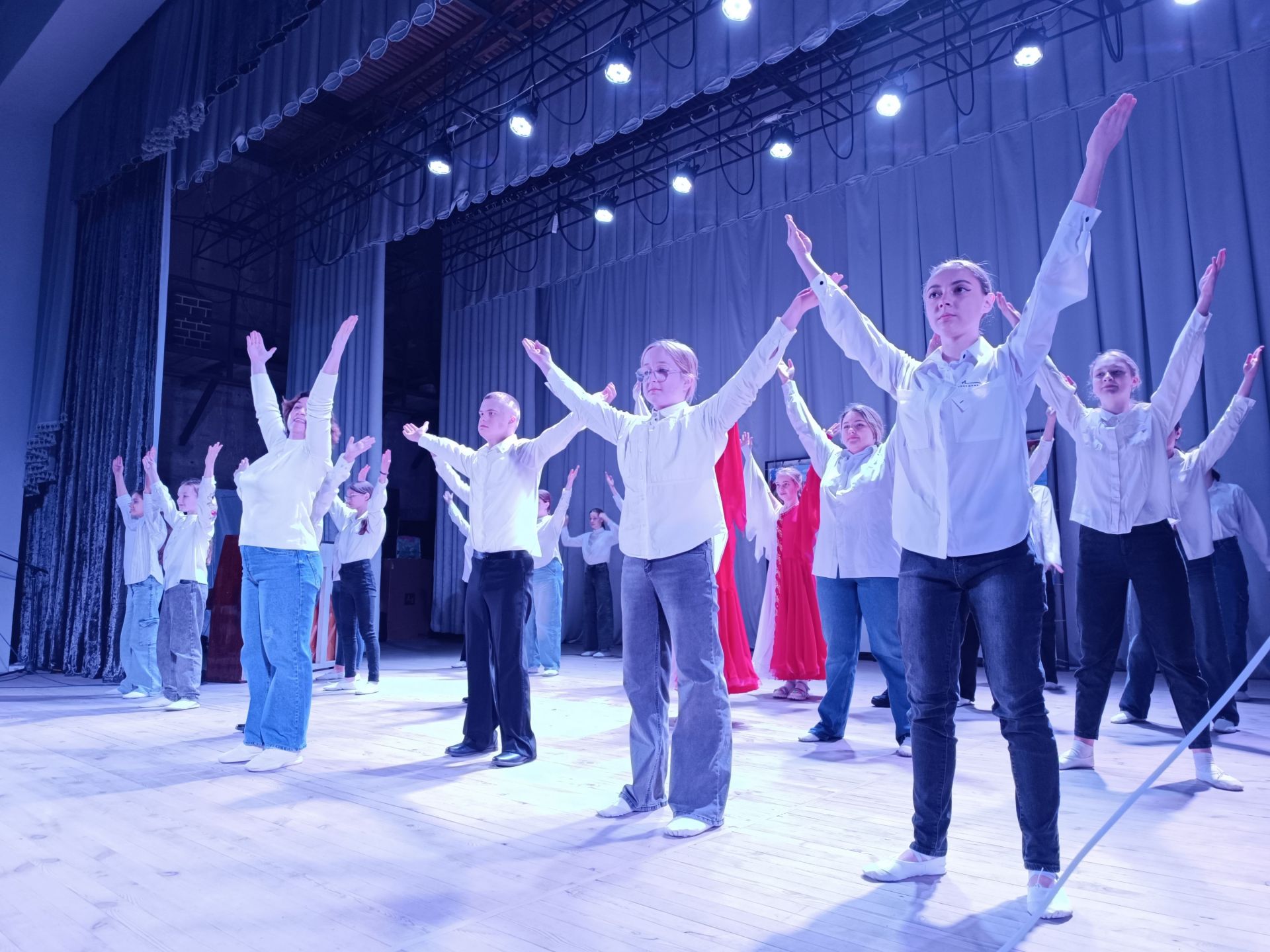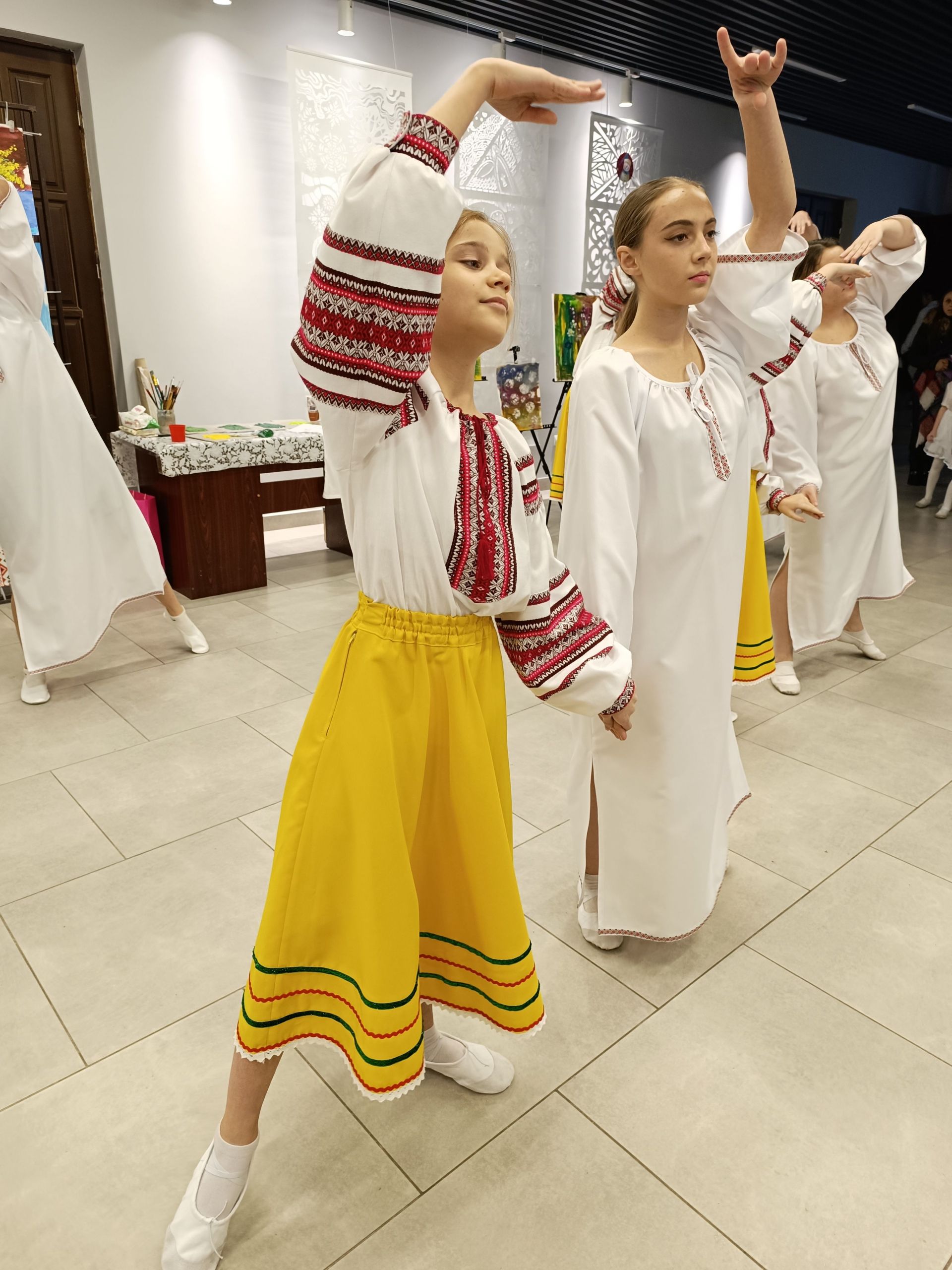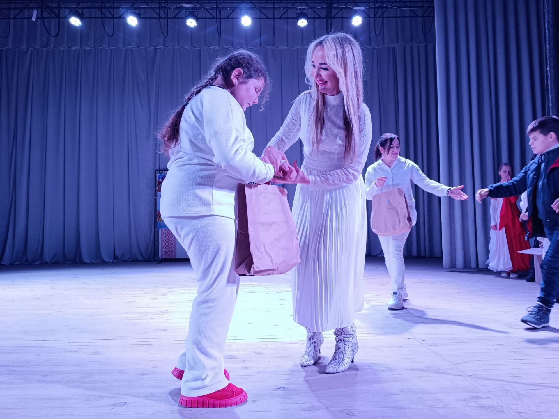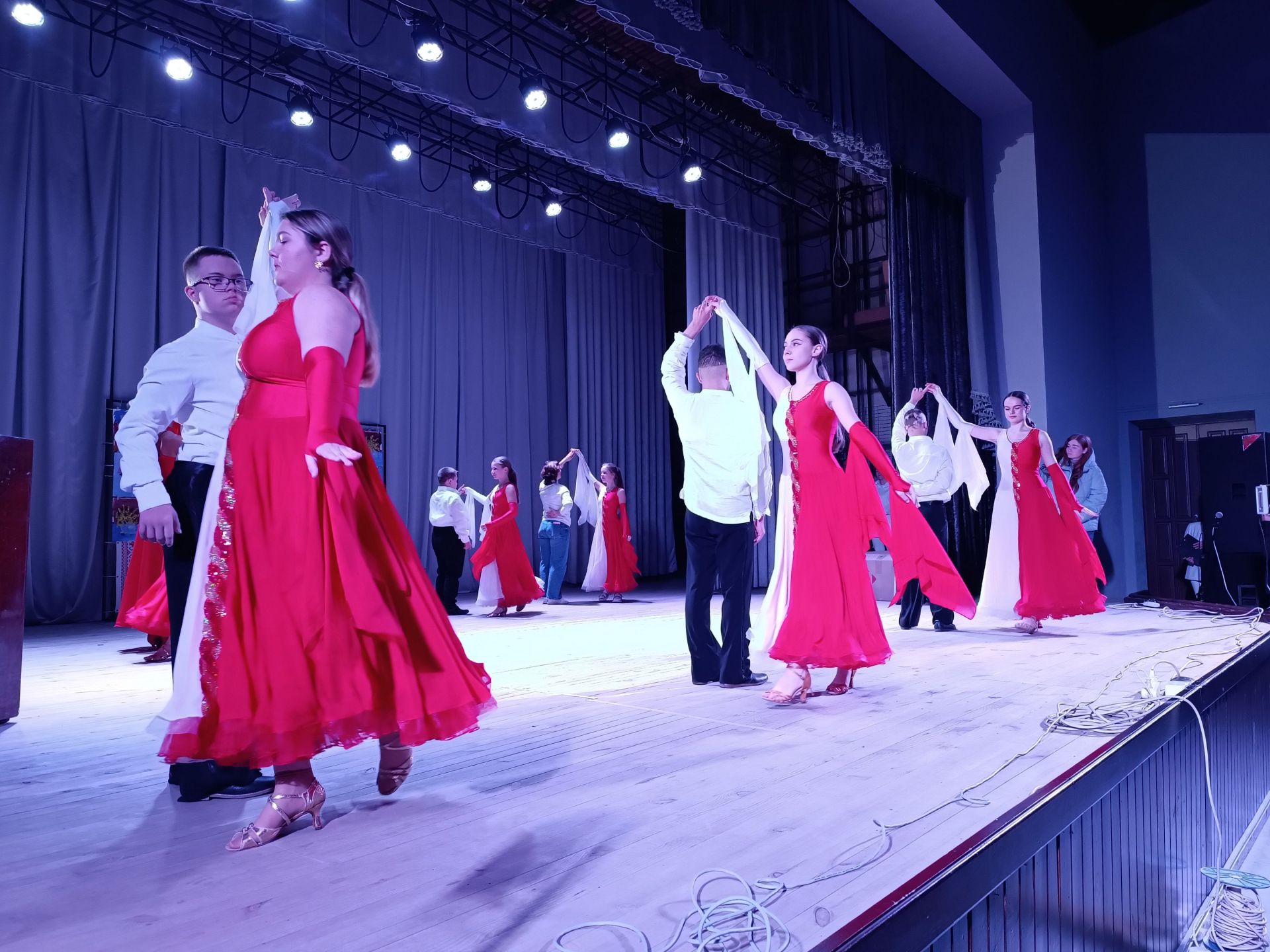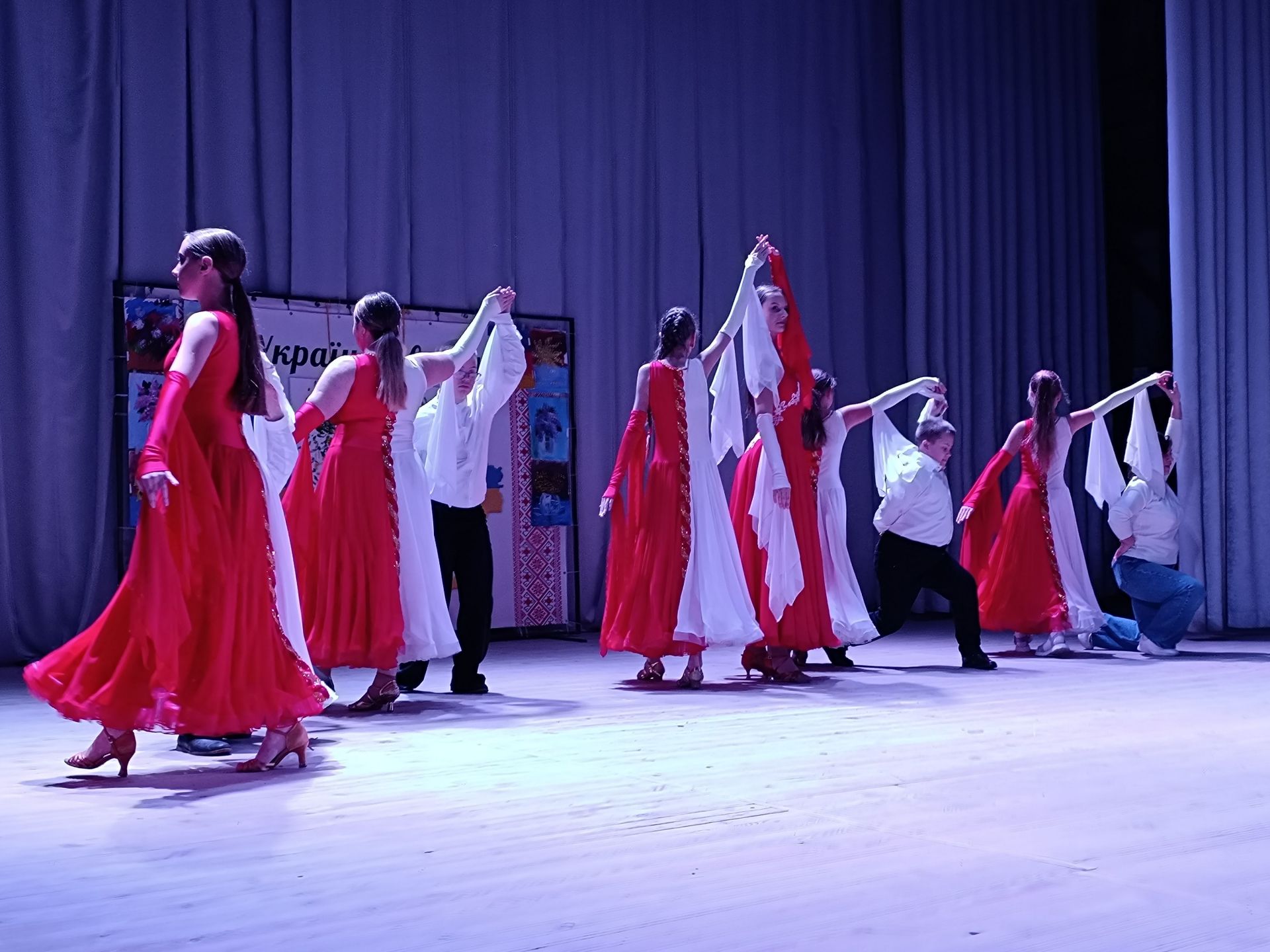— Зараз на цій сцені з’явиться хореографічний колектив, який був створений нещодавно, — каже ведуча Ольга Безпалько. — Керівником його є Надія Бортюк. Це особливий колектив, у якому займаються «діти сонця» та «діти дощу». Сьогодні вони виконають інтегрований танець.