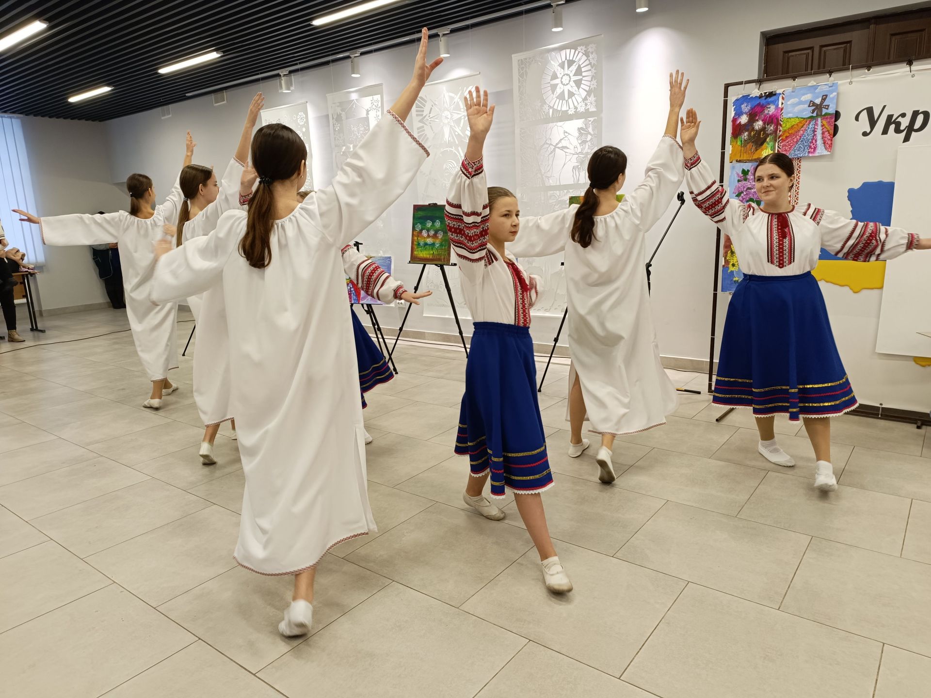 Завершився концерт патріотичним флешмобом, який провела хореограф Надія Бортюк. Діти вийшли на сцену, повторювали за Надією рухи і танцювали під пісню «Перлина-Україна». Долучилися і батьки, які сиділи в глядацькій залі.