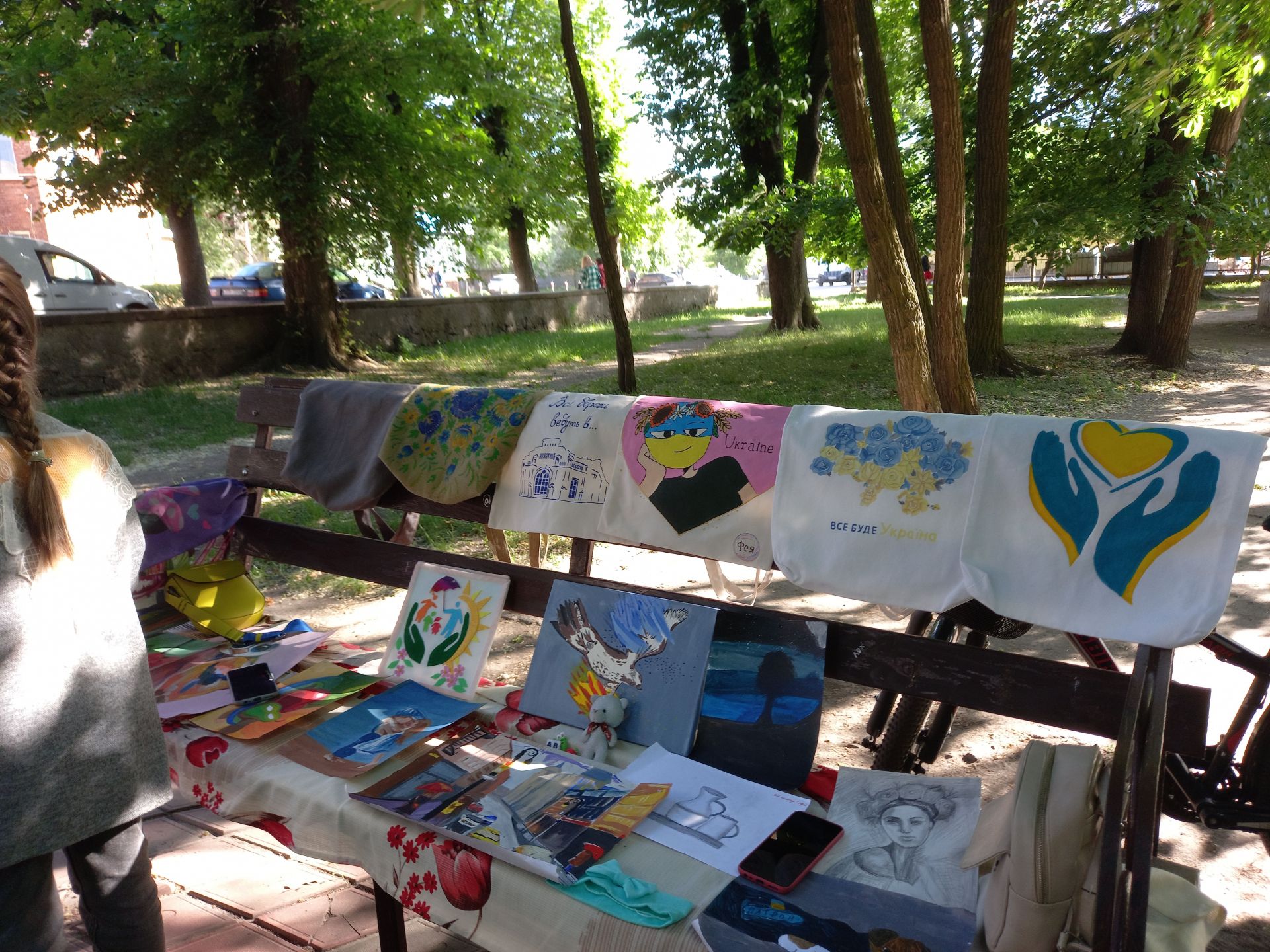 — Це досвід наших товаришів із заходу України, — розповідає Дарина Гуменюк, співорганізаторка акції. — У містах на заході такі ярмарки — це досить поширена практика. Ми вирішили скористатися прикладом і запропонували провести таке в нашій громаді. Відгукнулося 25 дітей, які погодилися взяти участь, принести свої роботи, картини, майстерки, магніти. Більшість робіт мають символічну ціну, не високу, тому ми не розраховуємо на великі збори. В першу чергу наша мета — підняти моральний дух. Тому що всім зараз важко, але діти повинні проживати своє дитинство на повну і навіть війна не має цьому завадити. Це невелеличка спроба допомогти їм в цьому. Коли діти причетні до такої великої справи як збір коштів для наших військових, це дуже їх стимулює, вони відчувають себе важливими і дотичними до великої справи.