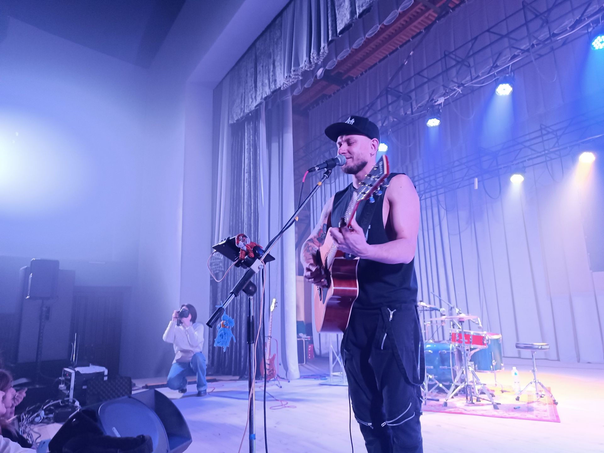 Після аукціону публіка підтягнулася ближче до сцени. Сергій Гайдучок зіграв декілька пісень зі свого сольного проєкту і презентував новий трек про те, що ми переможемо русню. Глядачі підготувалися і співали разом із Сергієм — напередодні концерту Гайдучок у своєму інстаграм попросив усіх, хто прийде на концерт, вивчити приспів.