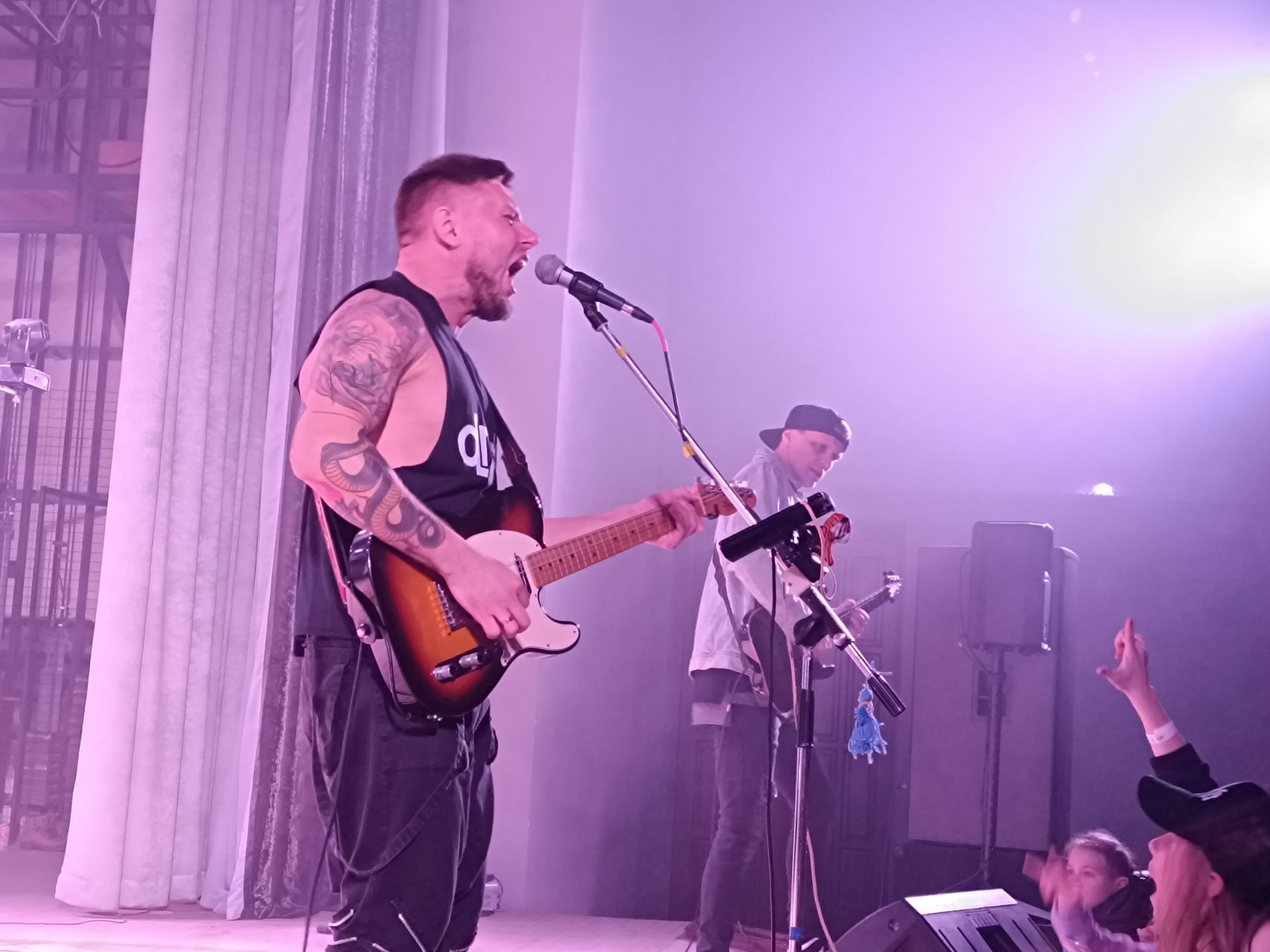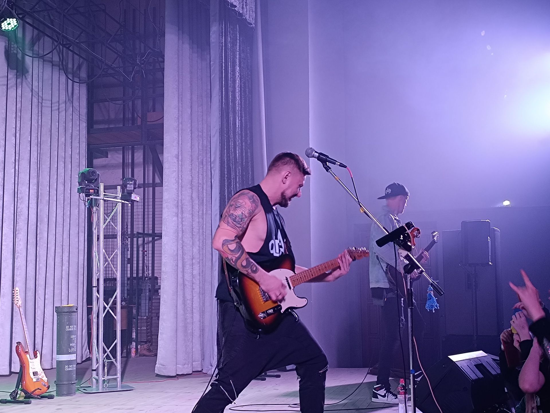 — Так, фонд «Бойовий волонтер України» збирає кошти для 80 Десантно-штурмової бригади, тому сьогодні ми не просто граємо концерт, а робимо гарну справу разом із вами. Усі кошти з концерту та продажу мерчу йдуть на закриття збору. Тому будемо сьогодні молодцями, так? Давайте, Козятин, живіше, — каже Сергій Гайдучок.