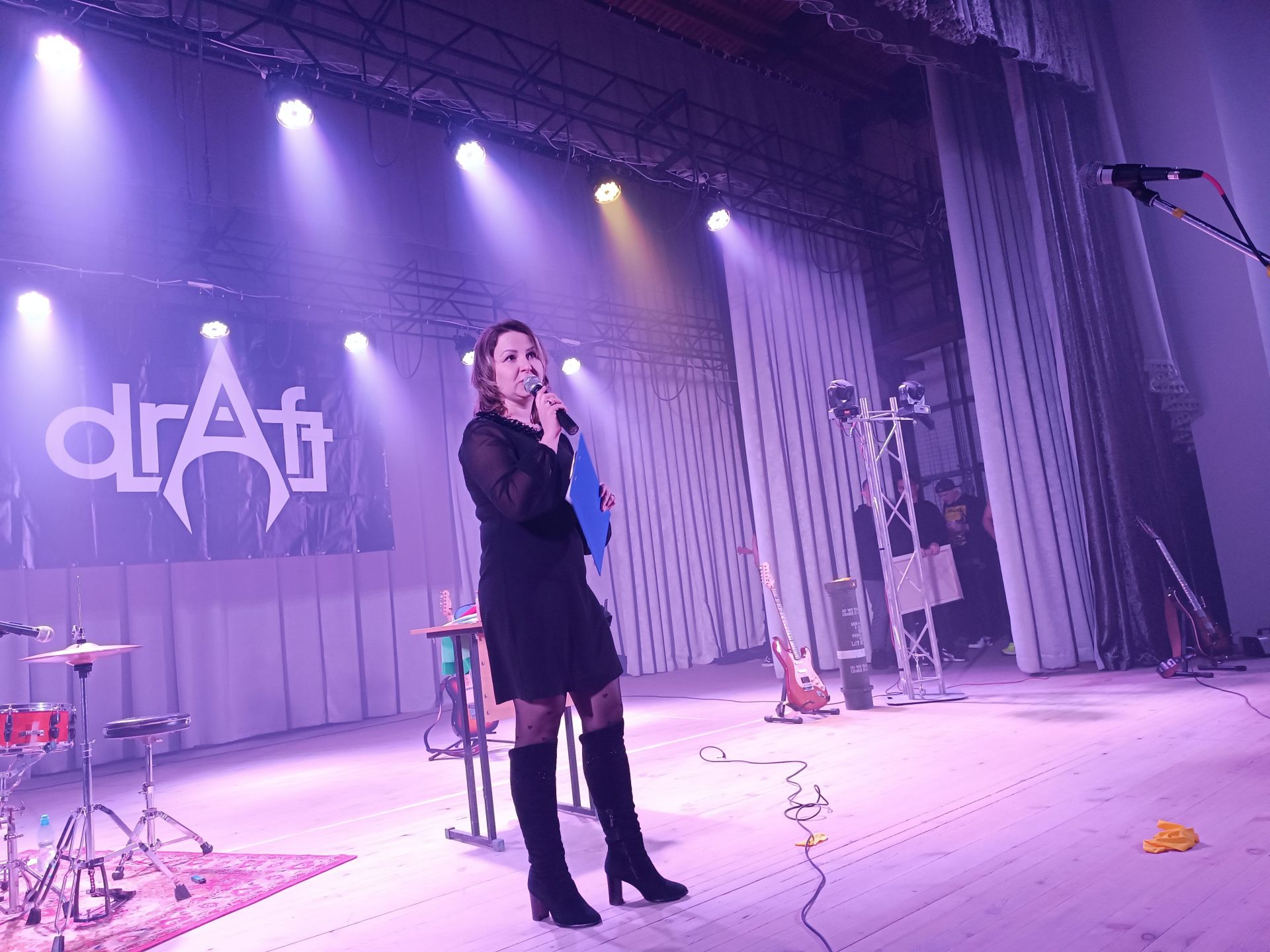 Перша частина концерту завершилася і на глядачів чекав приємний сюрприз — аукціон від гурту «Draft». На сцену вийшла ведуча Олена Кесарчук.