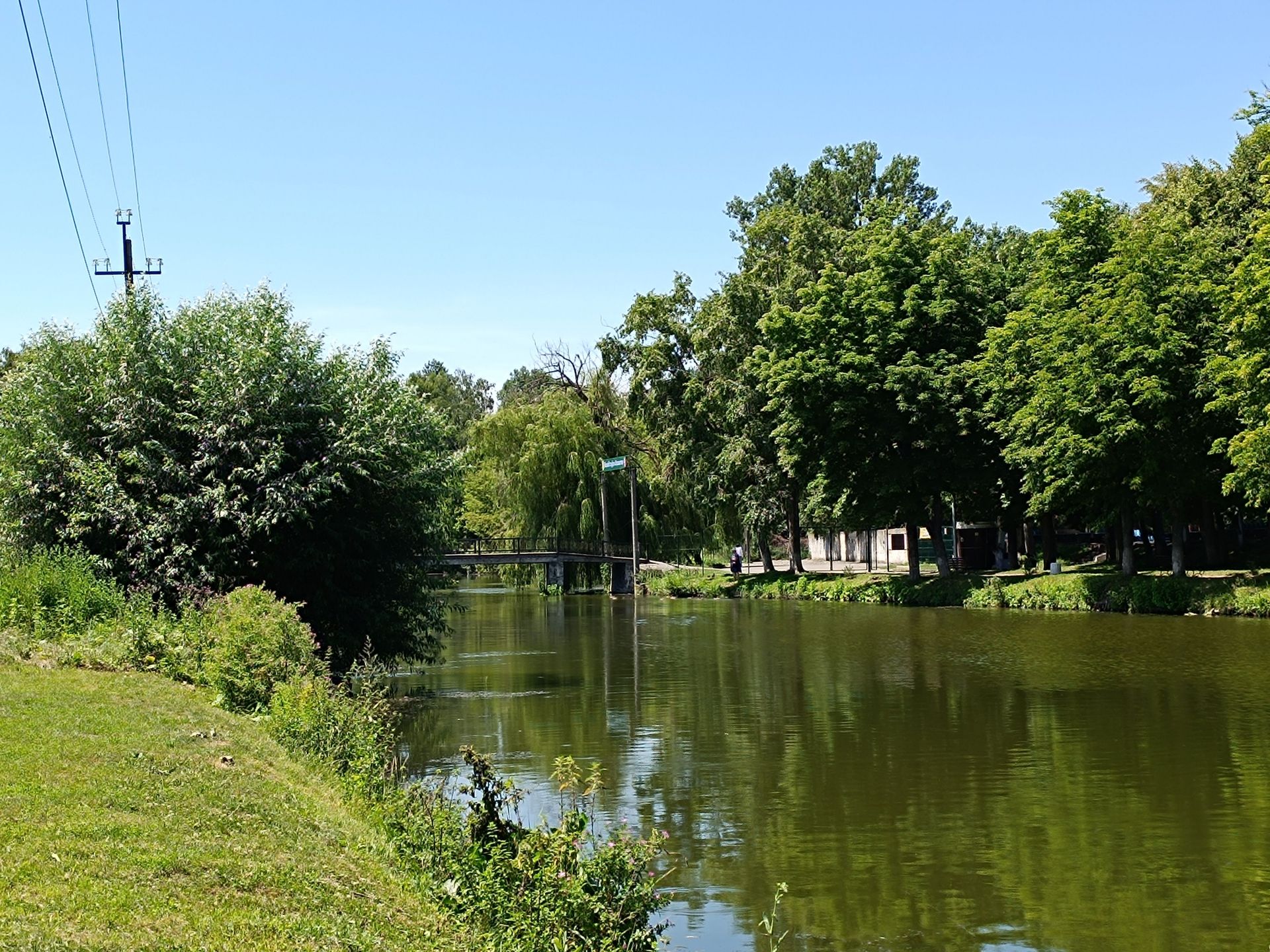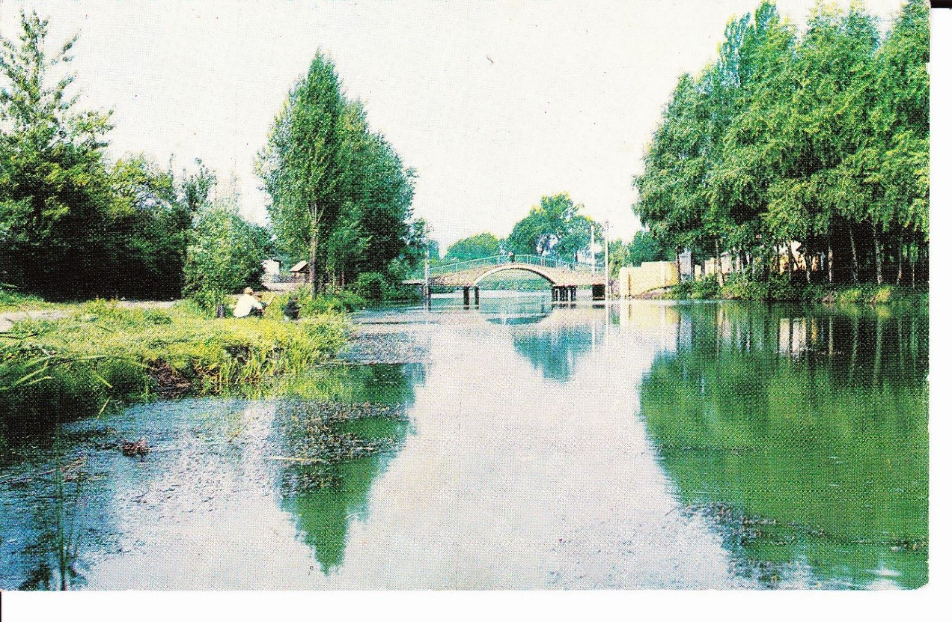 Зона відпочинку на Водокачці. Фото орієнтовно кінця 1980-их — початку 1990-их років. Цю зону відпочинку впорядкували у 1961-му, підірвавши земснарядом набережну річки Гуйва, щоб штучно зробити острів. На острові побудували стадіон, за ним збиралися створити парк «Першотравневий», але до кінця справу не довели. Родзинкою зони відпочинку був цегляний міст-арка, який до наших часів не зберігся. У 2008 році його демонтували через аварійність. На місці вишуканого мосту поставили новий