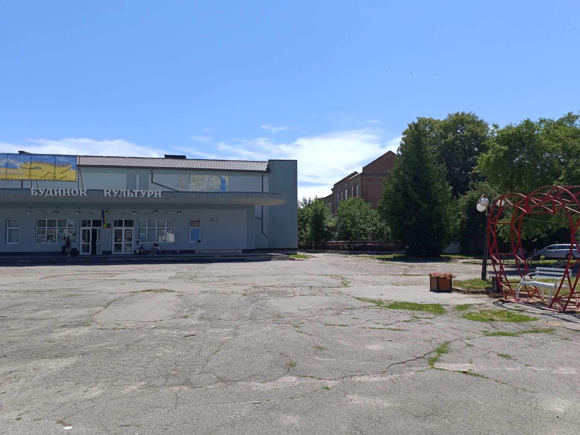 Центральна площа міста. Світлина 1960-их років. Приміщення, яке сьогодні ми знаємо як Міський будинок культури, на той час було кінотеатром «Мир». Його відкрили 8 березня 1962 року. Тут проводили покази фільмів та мультфільмів до 90-их років, поки існувала районна кіномережа. Перед будівлею кінотеатру був пам’ятник Леніну, а посеред площі стояв фонтан. У 1970-их центральну площу перебудували і водограй забрали