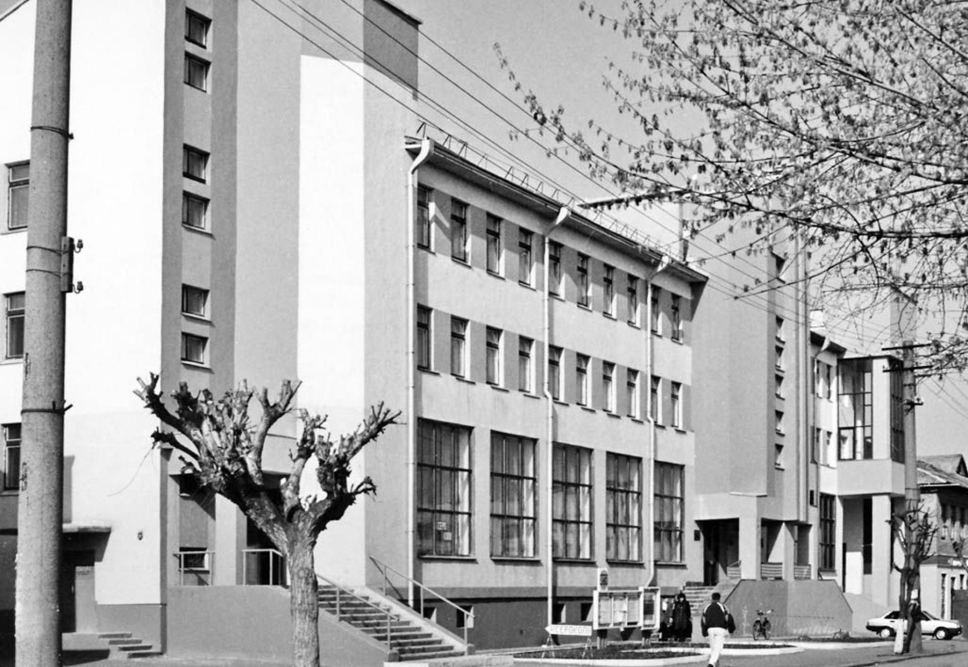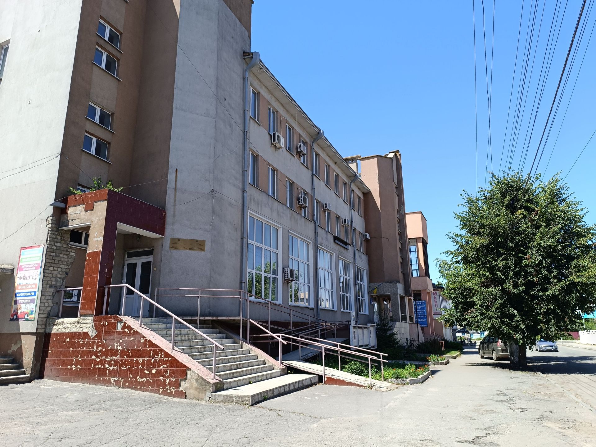 Так у радянські часи виглядала будівля Центру зайнятості. За нею двоповерхівка, яку бачимо на вулиці нині. Ця частина центру міста мало змінилася за десятиліття. Хіба що видалили дерево перед будівлею, а в підвальному приміщенні облаштували магазин