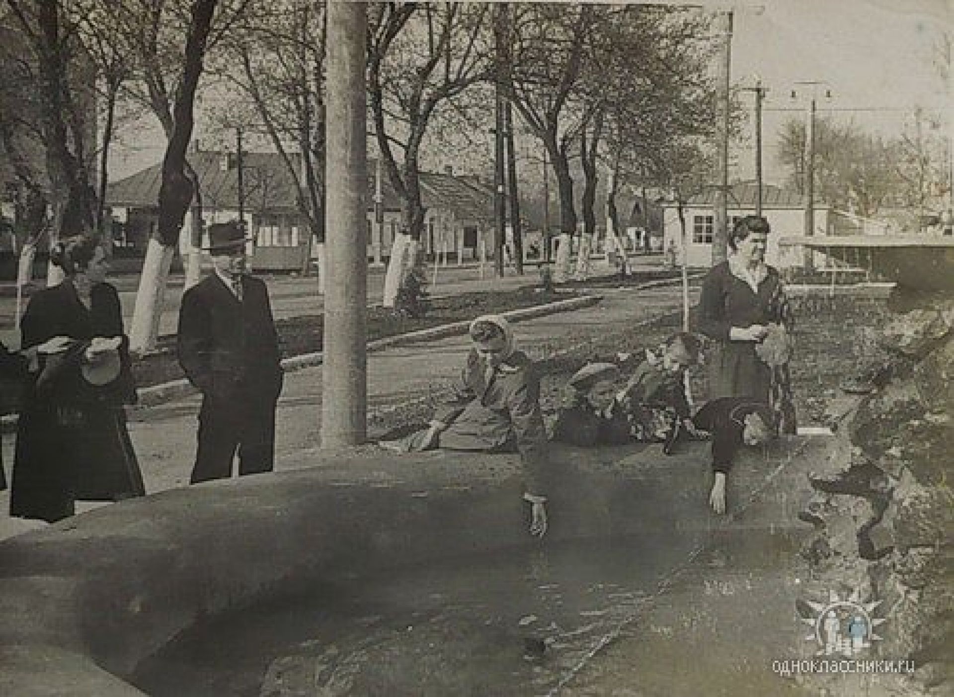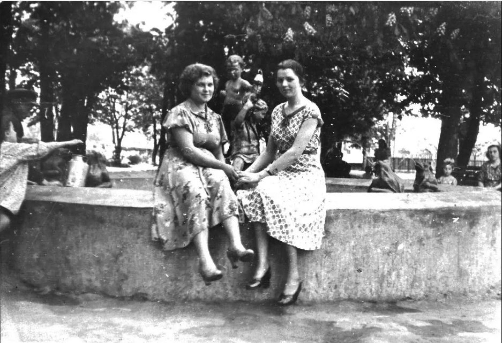 Ще один водограй у Козятині. Фото 1958-1960-их років. Козятинчани добре знають, що стояв він у центральному сквері. Та якщо фонтан на площі був оформлений значно простіше, водограй у парку мав навіть скульптури. Бетонна основа колишнього фонтану зберігалася у сквері до початку 2000-них років. Її демонтували, коли почали проводити реконструкцію парку за каденції міського голови Михайла Висоцького. Сьогодні на цьому місці альтанка