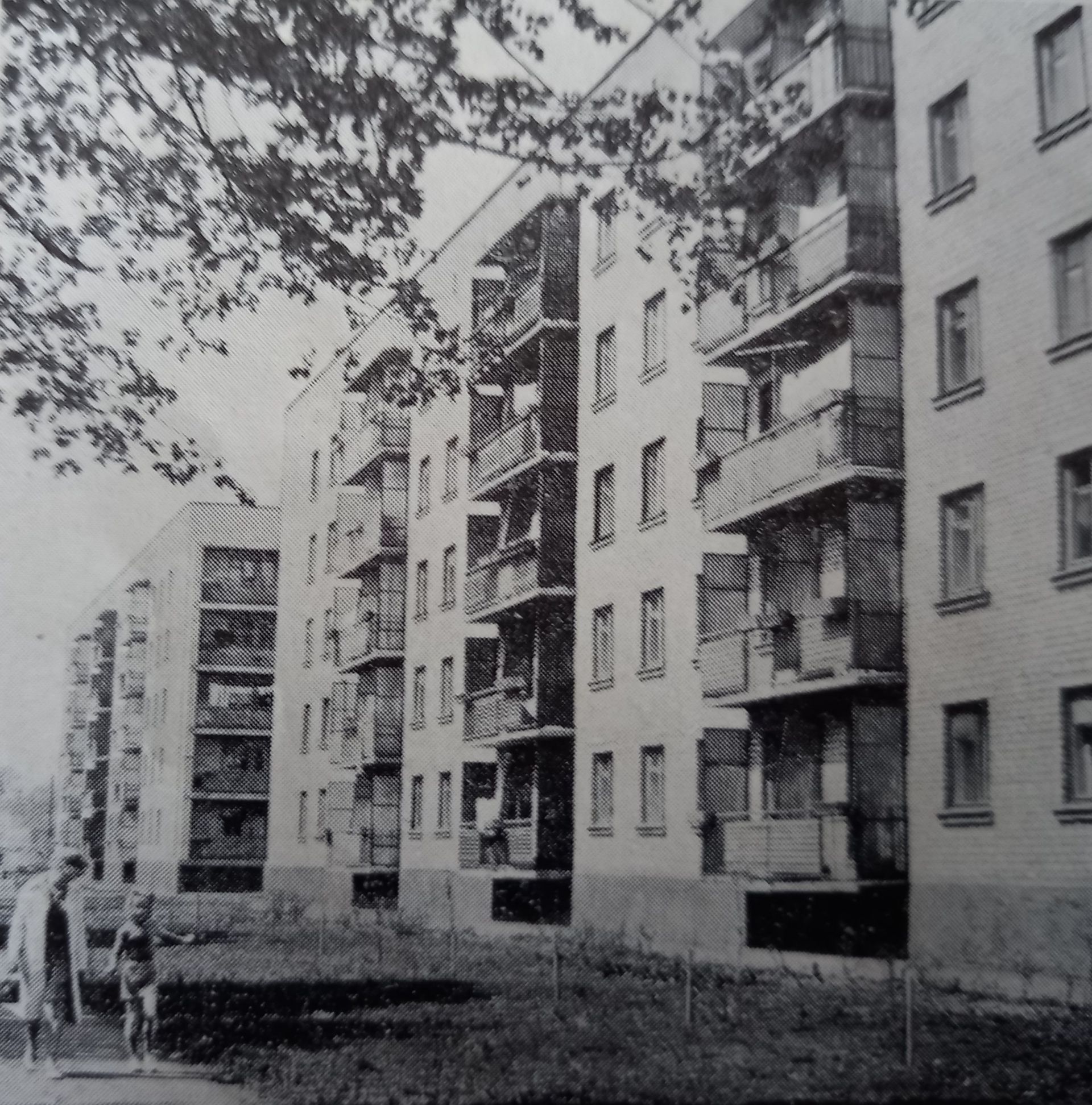 Чехословацький будинок, фото 1979 року. Ми знайшли його у брошурі «Козятин. Путівник», яка розповідає про наше місто часів Радянського Союзу. Чехословацький — один із небагатьох козятинських будинків, який має народну назву. Його так нарекли, тому що п’ятиповерхівку зводили за так званим «чеським проєктом». П’ятиповерхівку зводили як житловий будинок. Нині деякі квартири першого поверху переобладнали під бізнес і відкрили магазин взуття, відділення нової пошти та офіс фінансової компанії