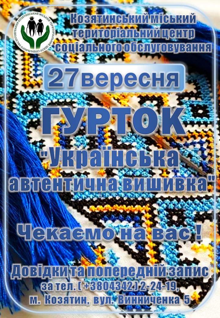- З 27 вересня у Козятинському міському територіальному центрі соціального обслуговування для людей поважного віку починає свою роботу гурток «Українська автентична вишивка».