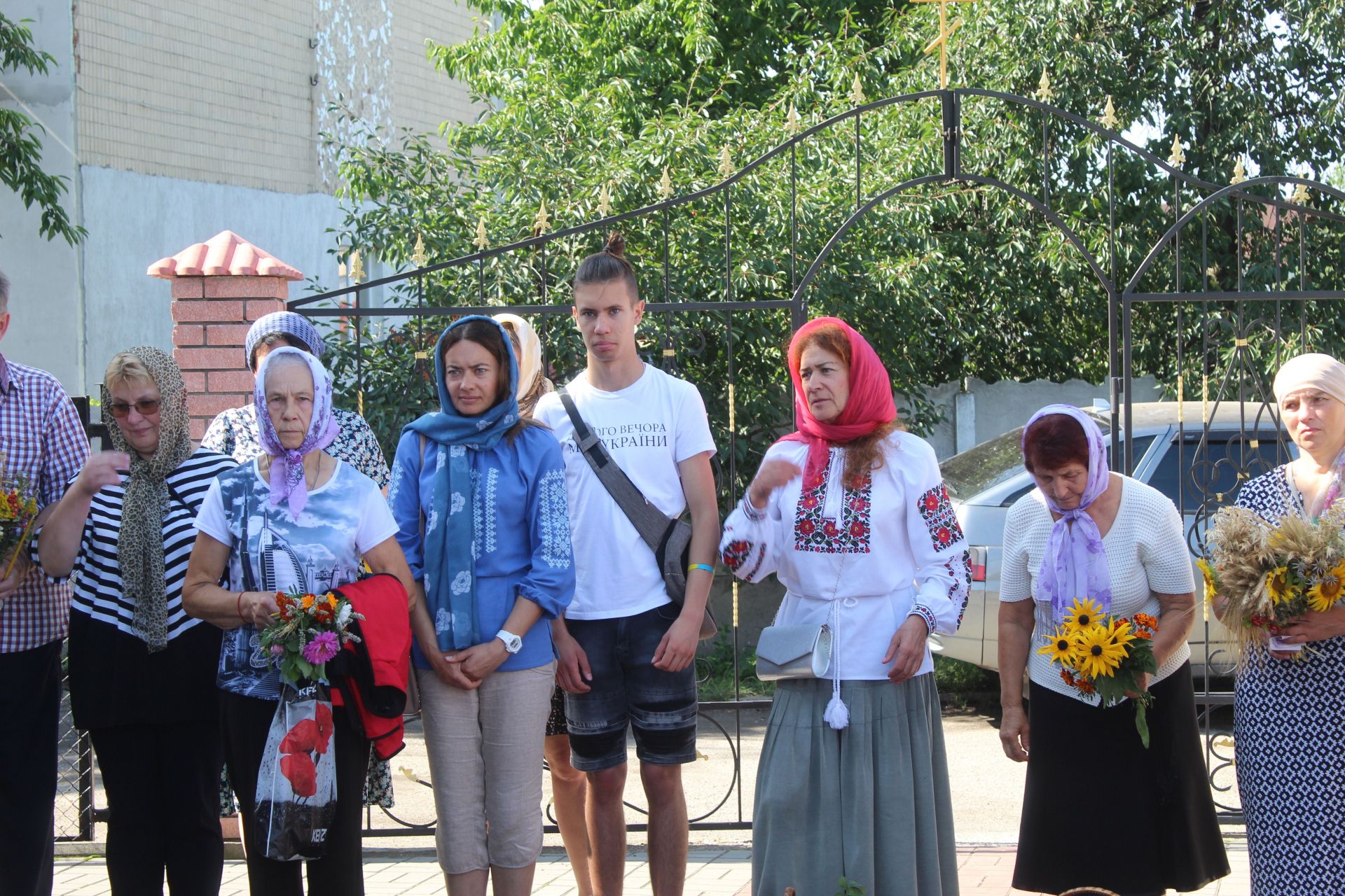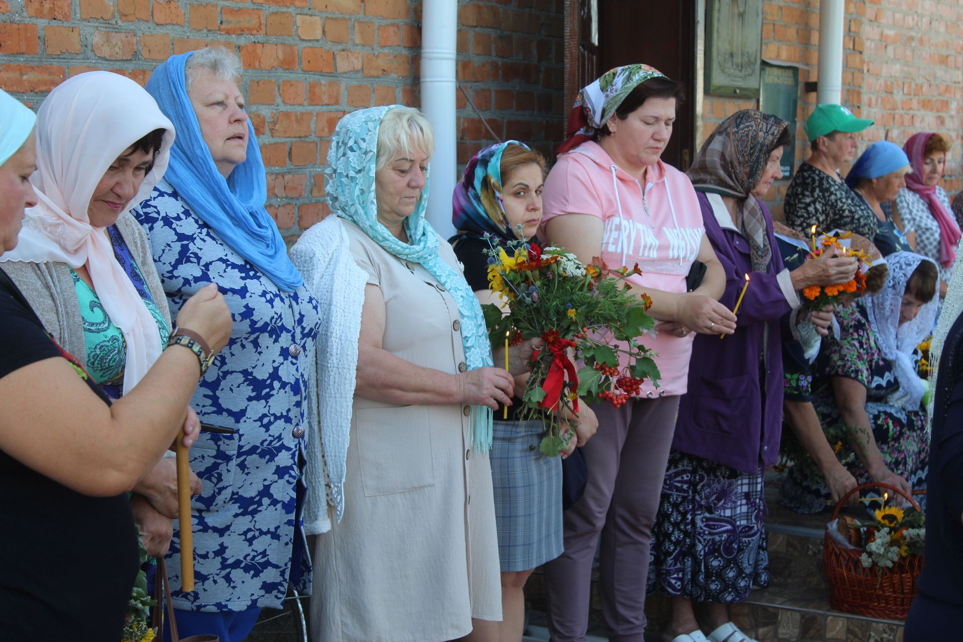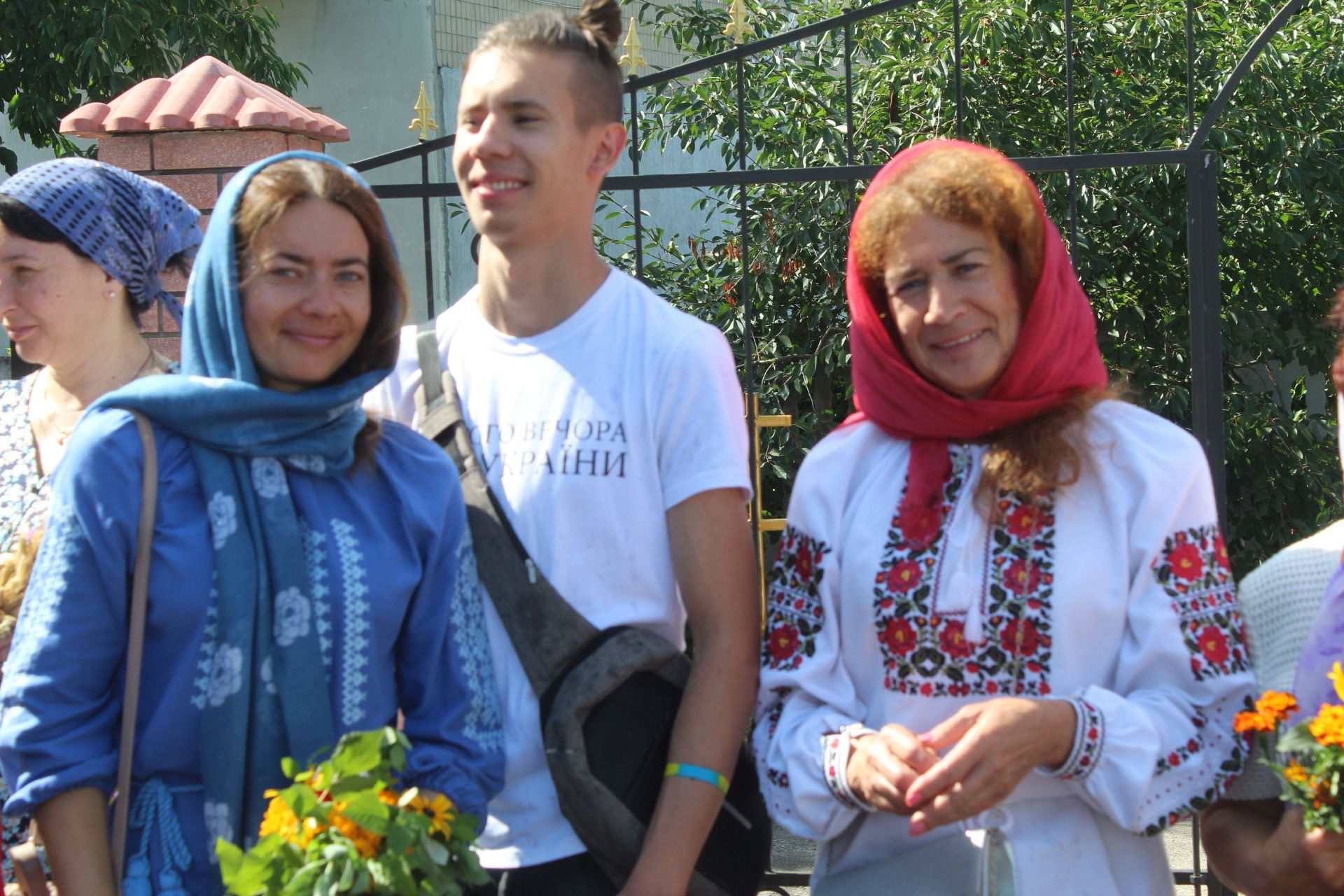 За традицією, ми побували в Православній церкві України в церкві Покрови пресвятої Богородиці. Настоятель храму протоієрей Василь Влізло саме проводив службу Божу. В молитві до Бога він просив у Всевишнього захисту для наших воїнів і миру для України. По завершенні святкової літургії отець Василь подякував всіх хто прийшов до храму та запросив всіх прихожан вийти на подвір’я церкви для освячення спасівських кошиків