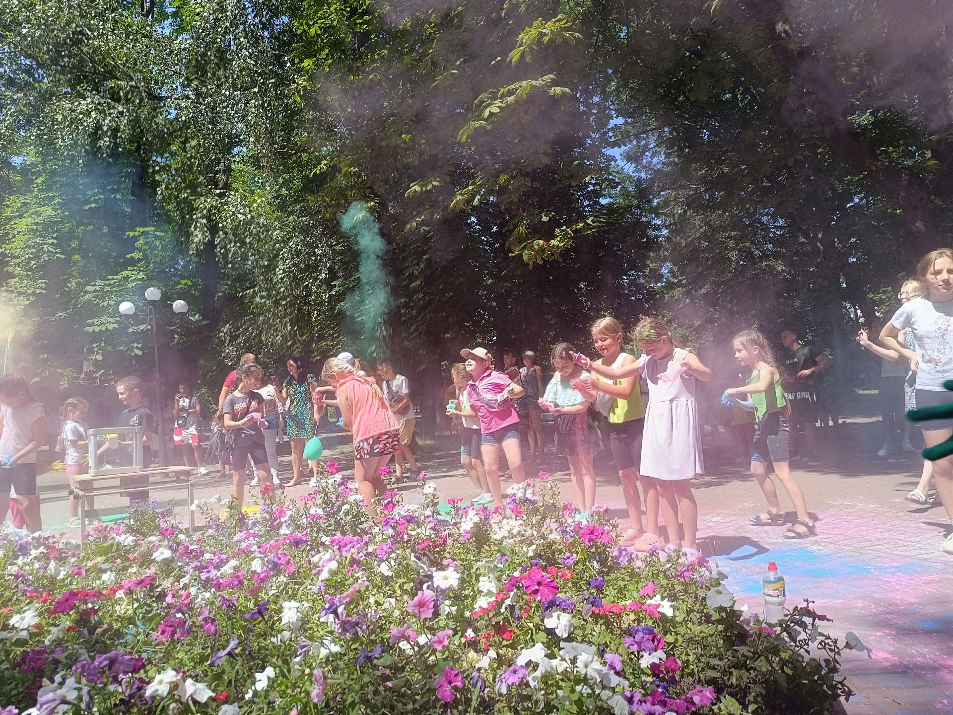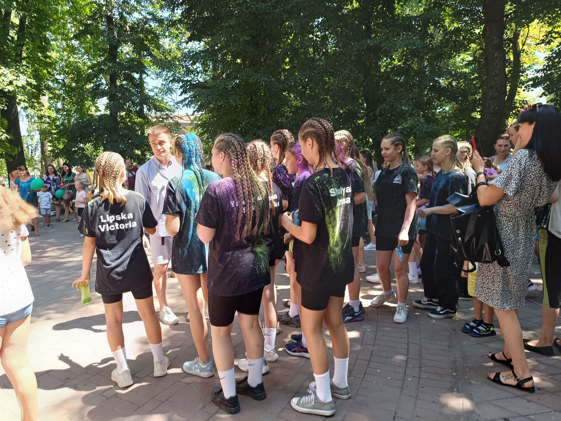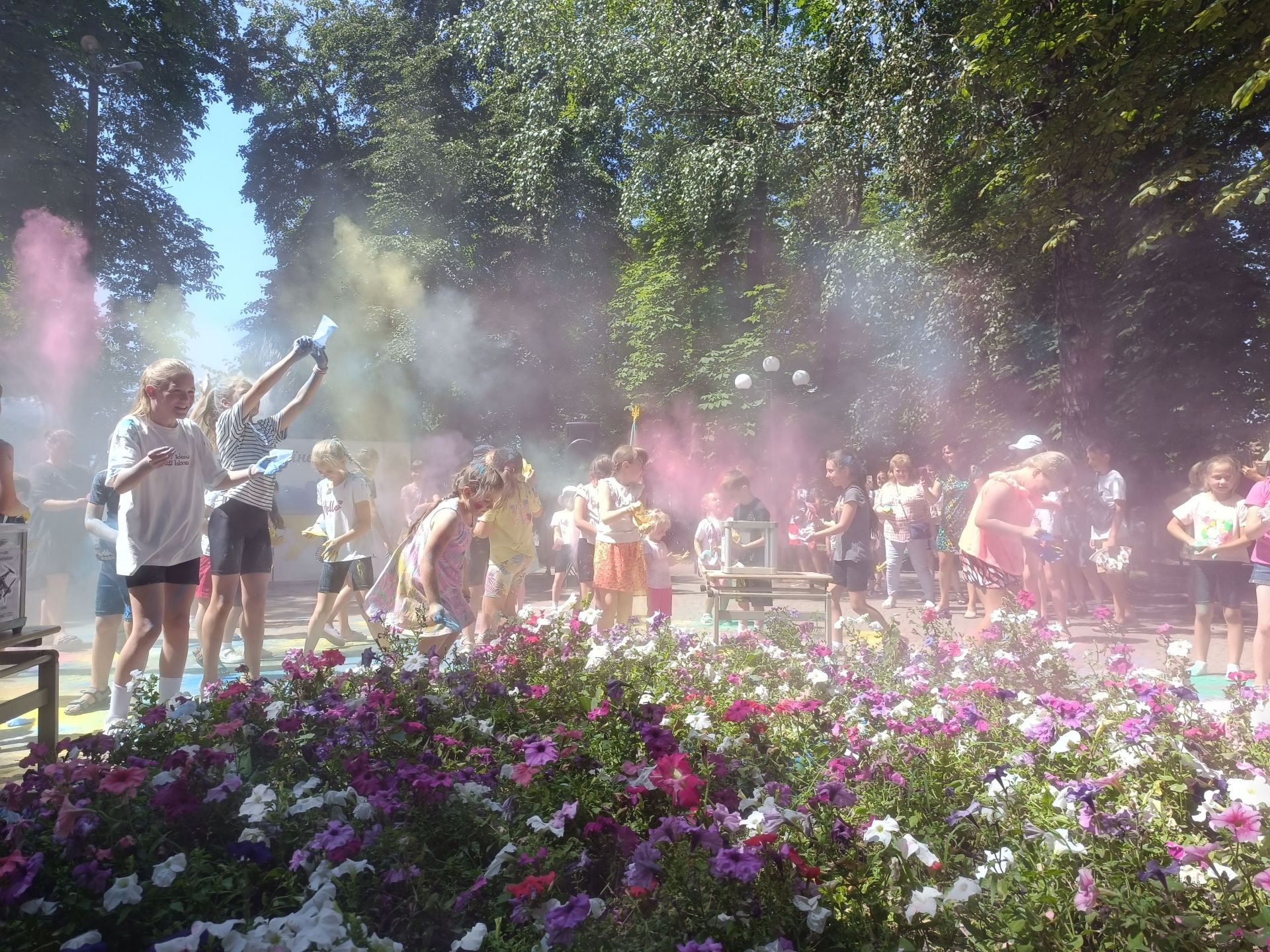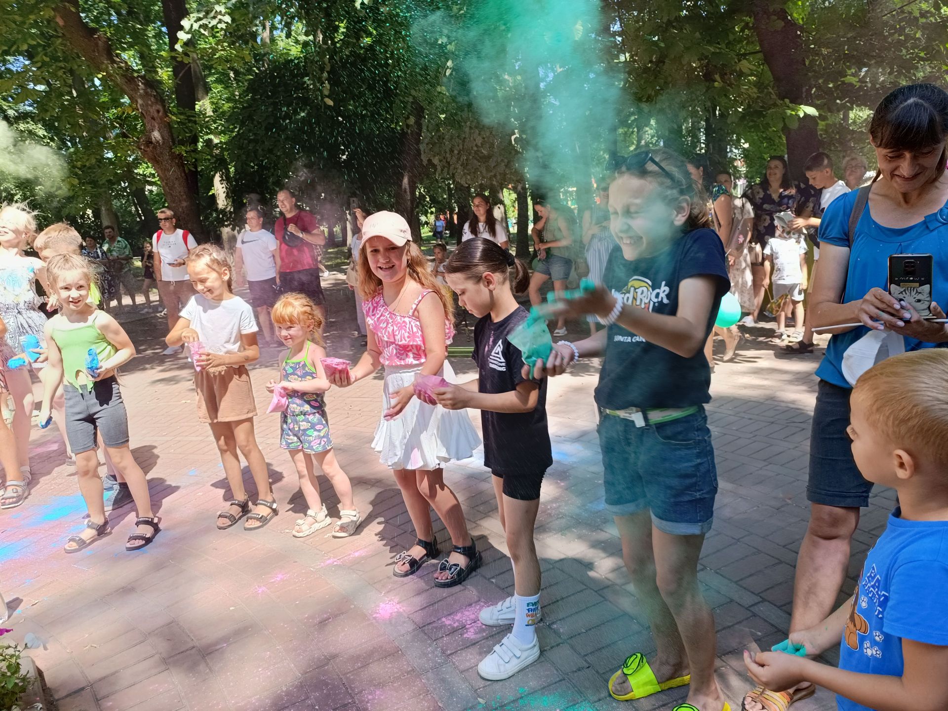 Наостанок провели ще один танцювальний флешмоб, а тоді стали паровозиком і під звуки «Ламбади» пішли гуляти алеями скверу. Тим часом із імпровізованої сцени забрали покриття. Усім учасникам флешмобу роздали пакетики із порошковою фарбою. Діти повернулися до центру парку і влаштували міні-паті «Магія кольорів» — підкидали догори різнокольоровий порошок, а потім танцювали.