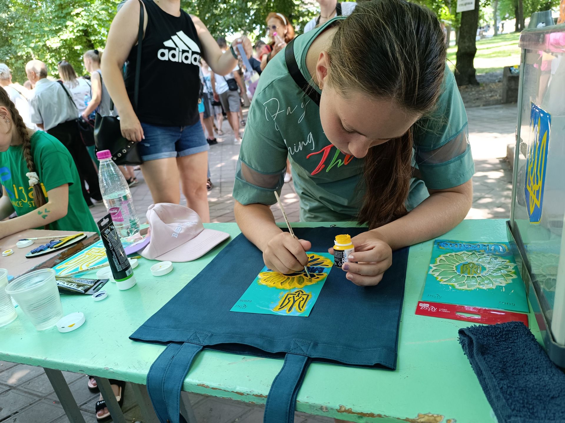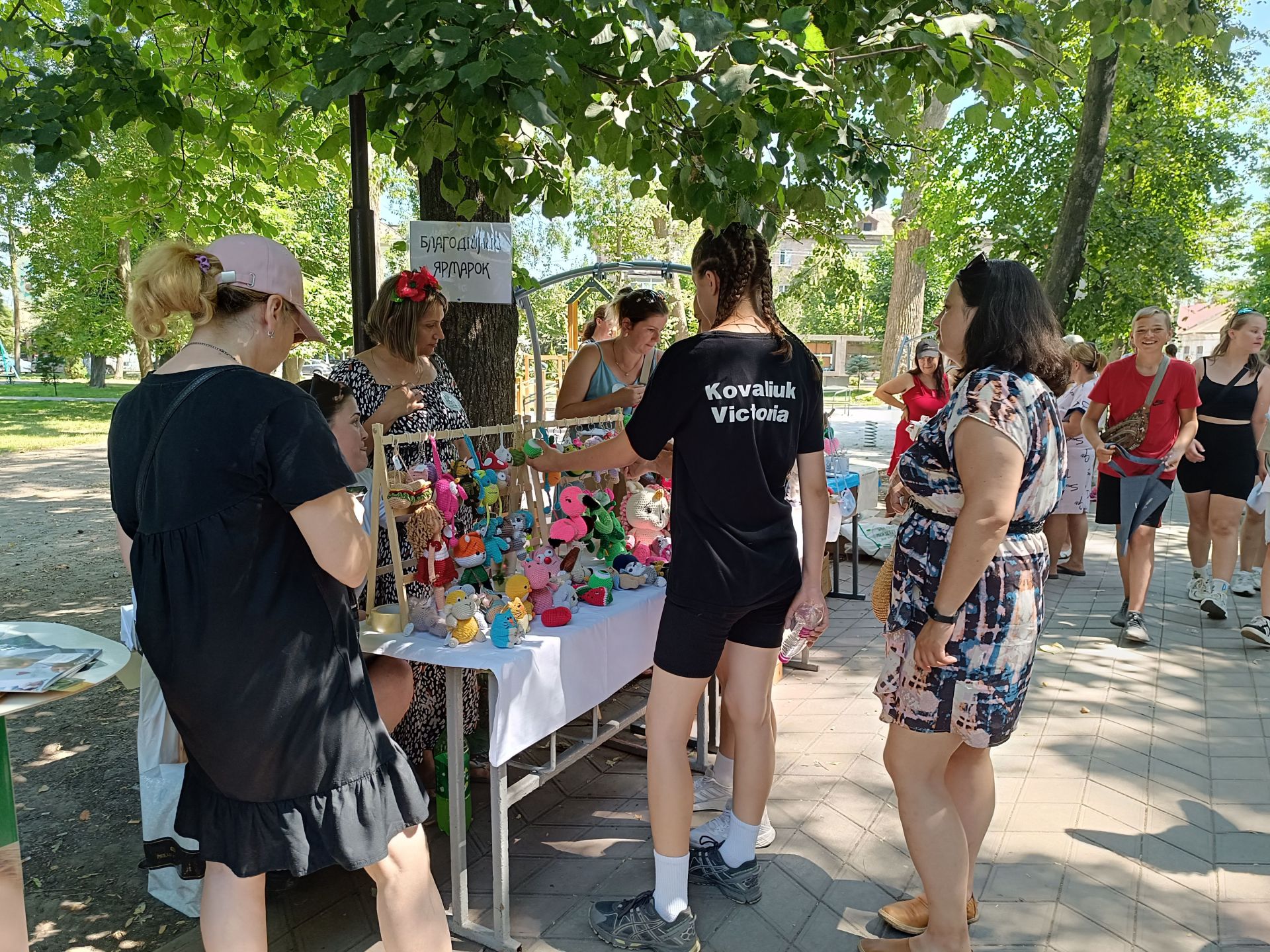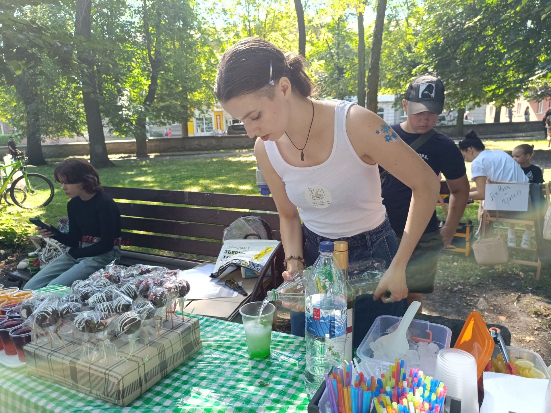 Організували у сквері також благодійний ярмарок, на якому робили аквагрим, татуювання хною, продавали вироби ручної роботи, частували смаколиками та прохолодними напоями.