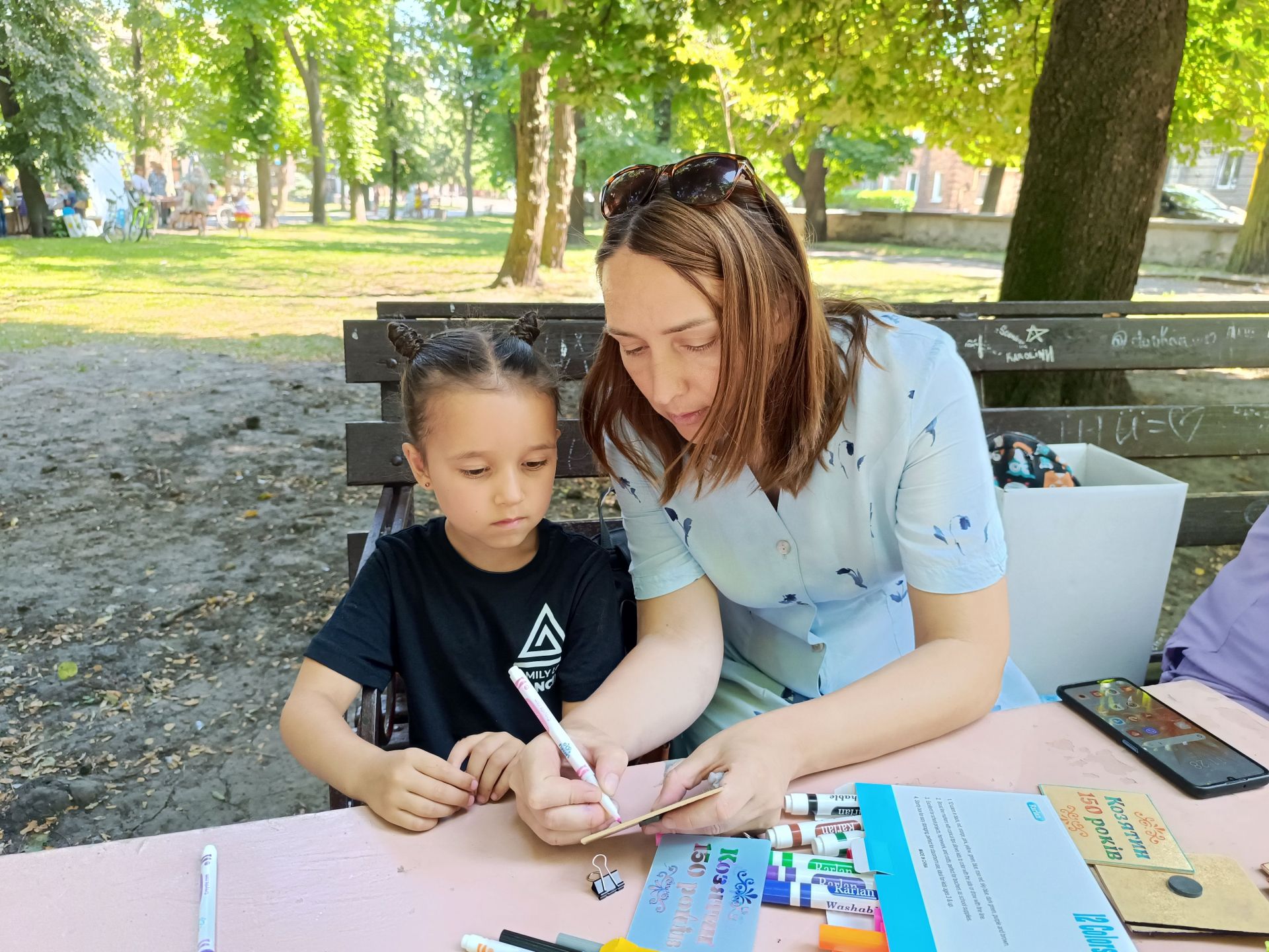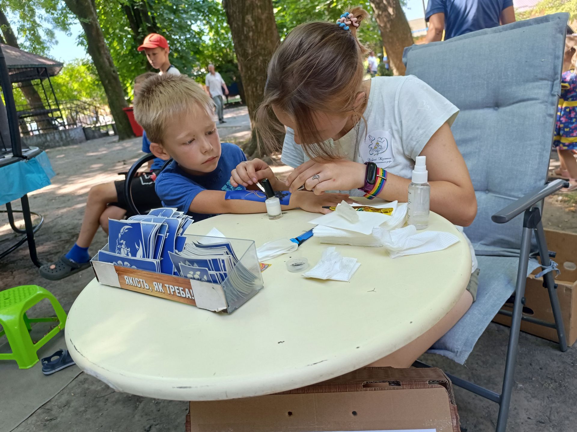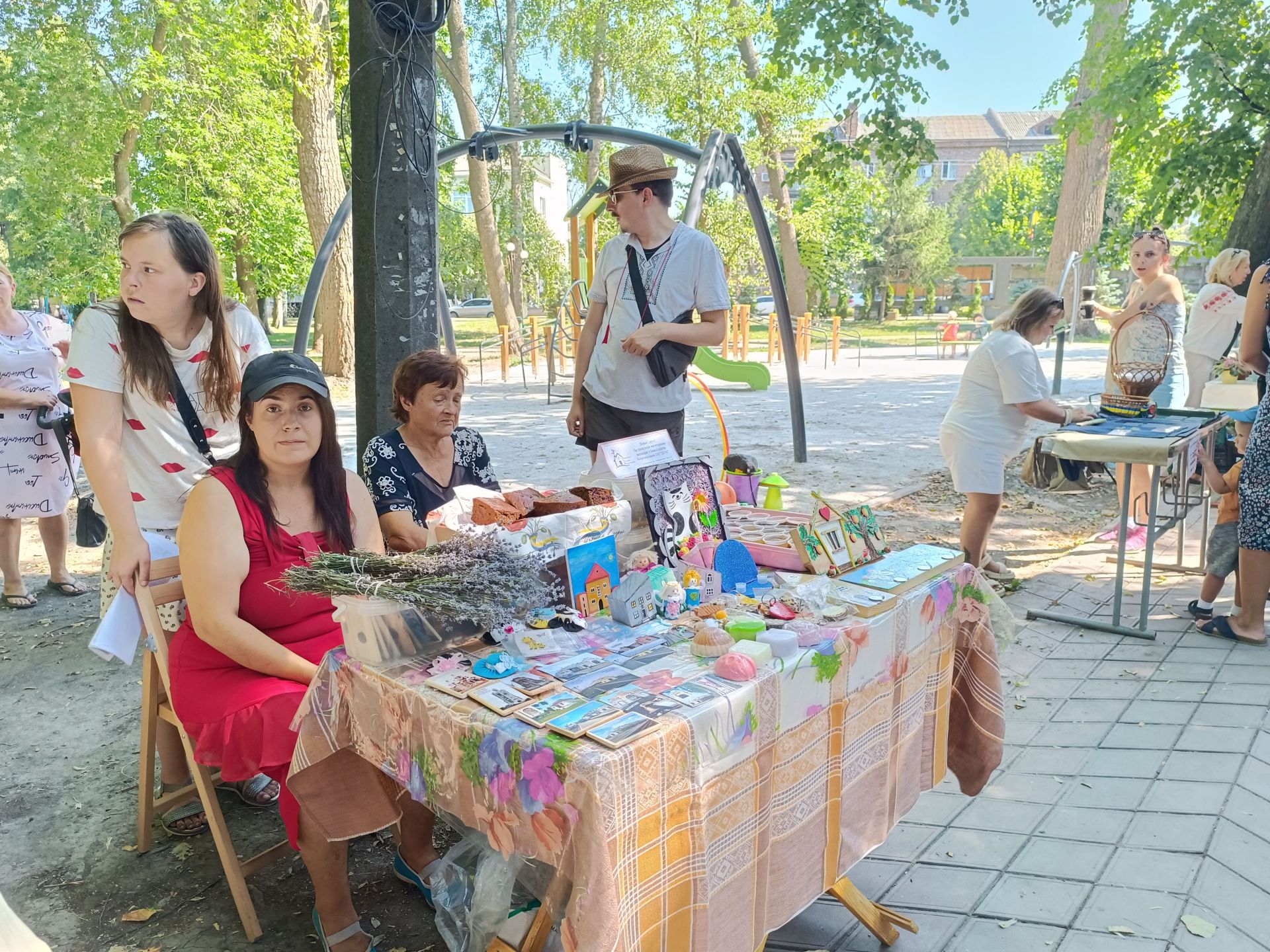 Організували у сквері також благодійний ярмарок, на якому робили аквагрим, татуювання хною, продавали вироби ручної роботи, частували смаколиками та прохолодними напоями.