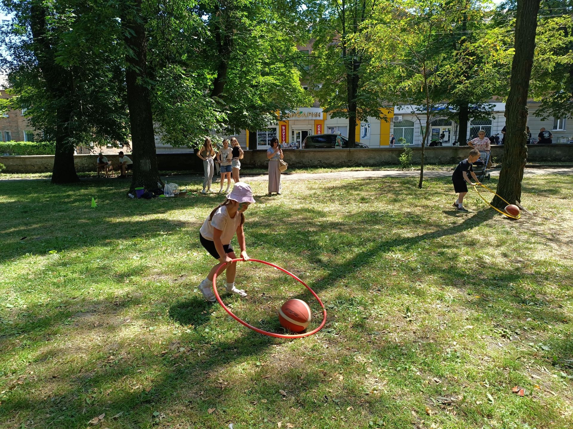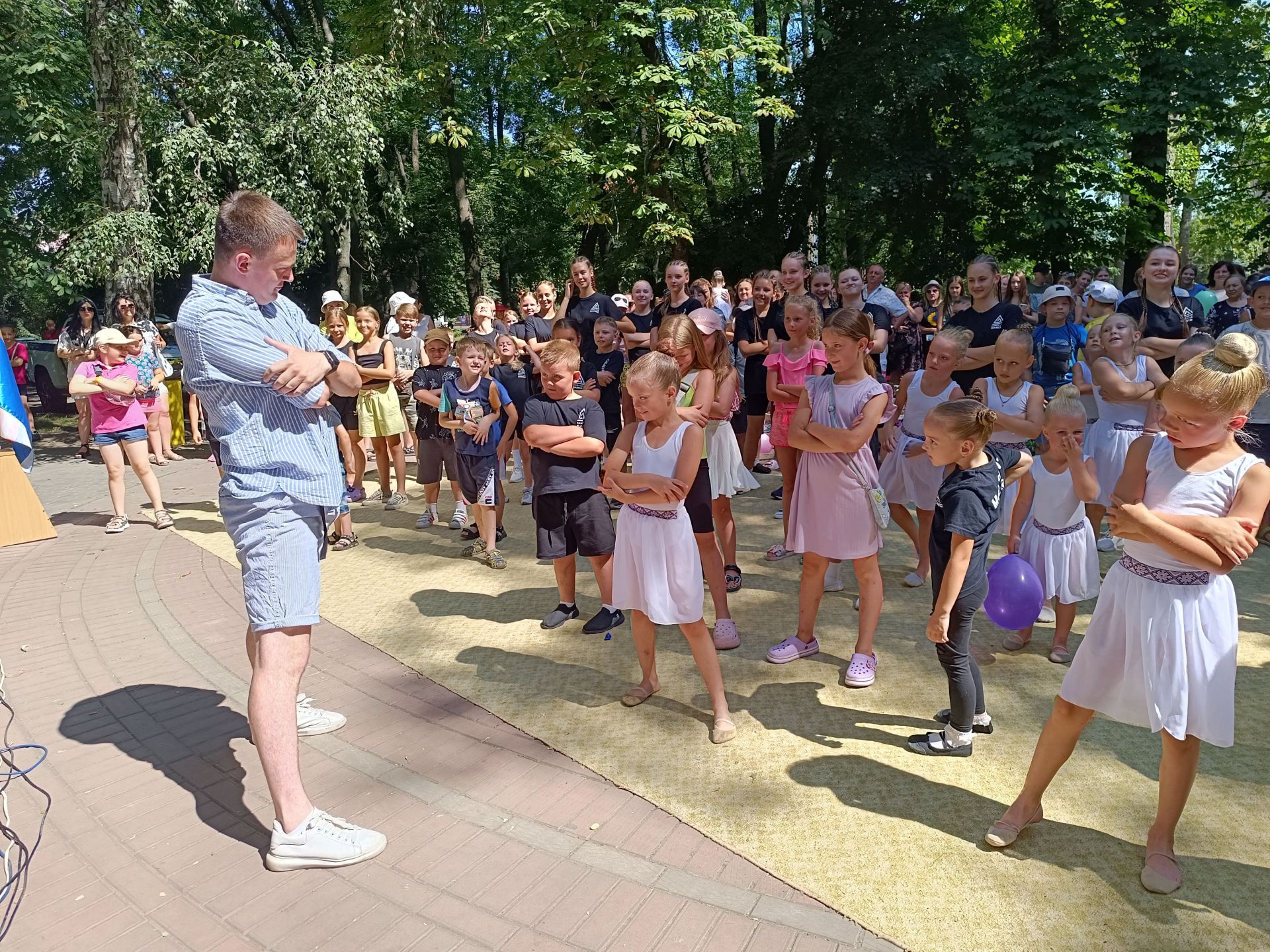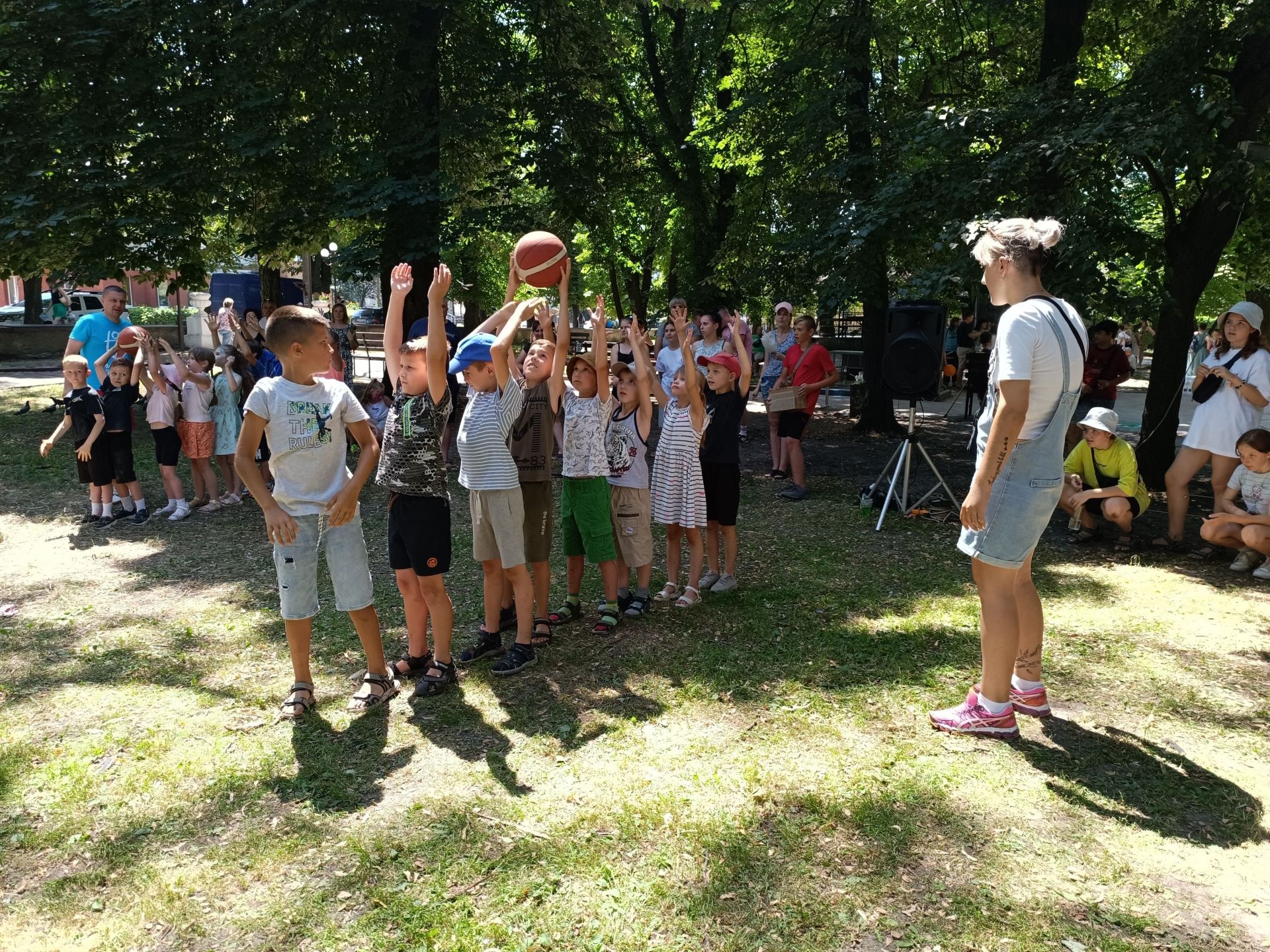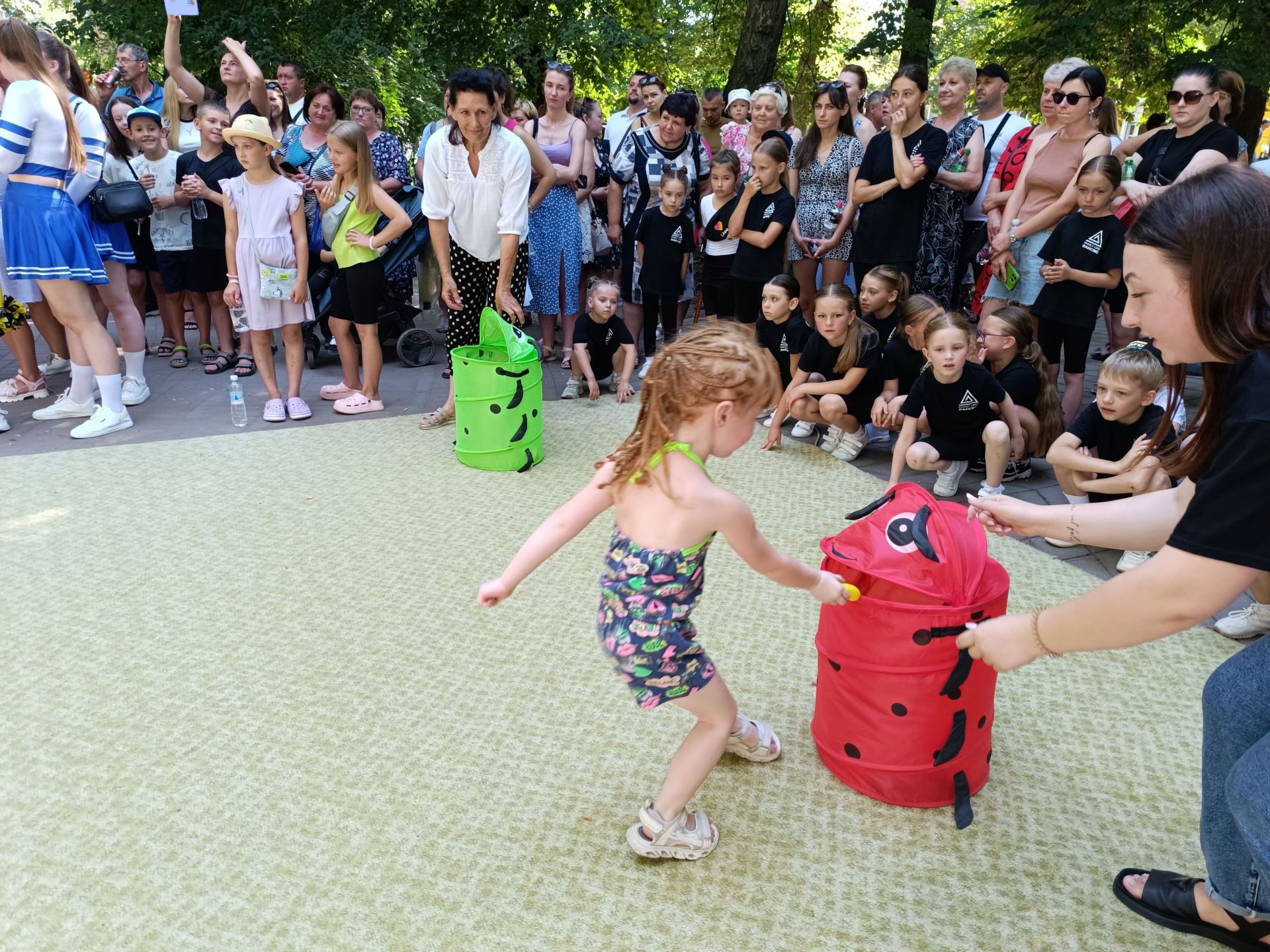 Після концерту провели «Веселі старти». Тетяна та Антон набирали собі команди, а учасники змагалися в естафетах. Діти передавали одне одному м’яч, збирали у відеречка кульки, пробігали в обручі, стрибали, бігли змійкою на швидкість і переносили паличками повітряну кульку. Учасники команди-переможця отримували призи.