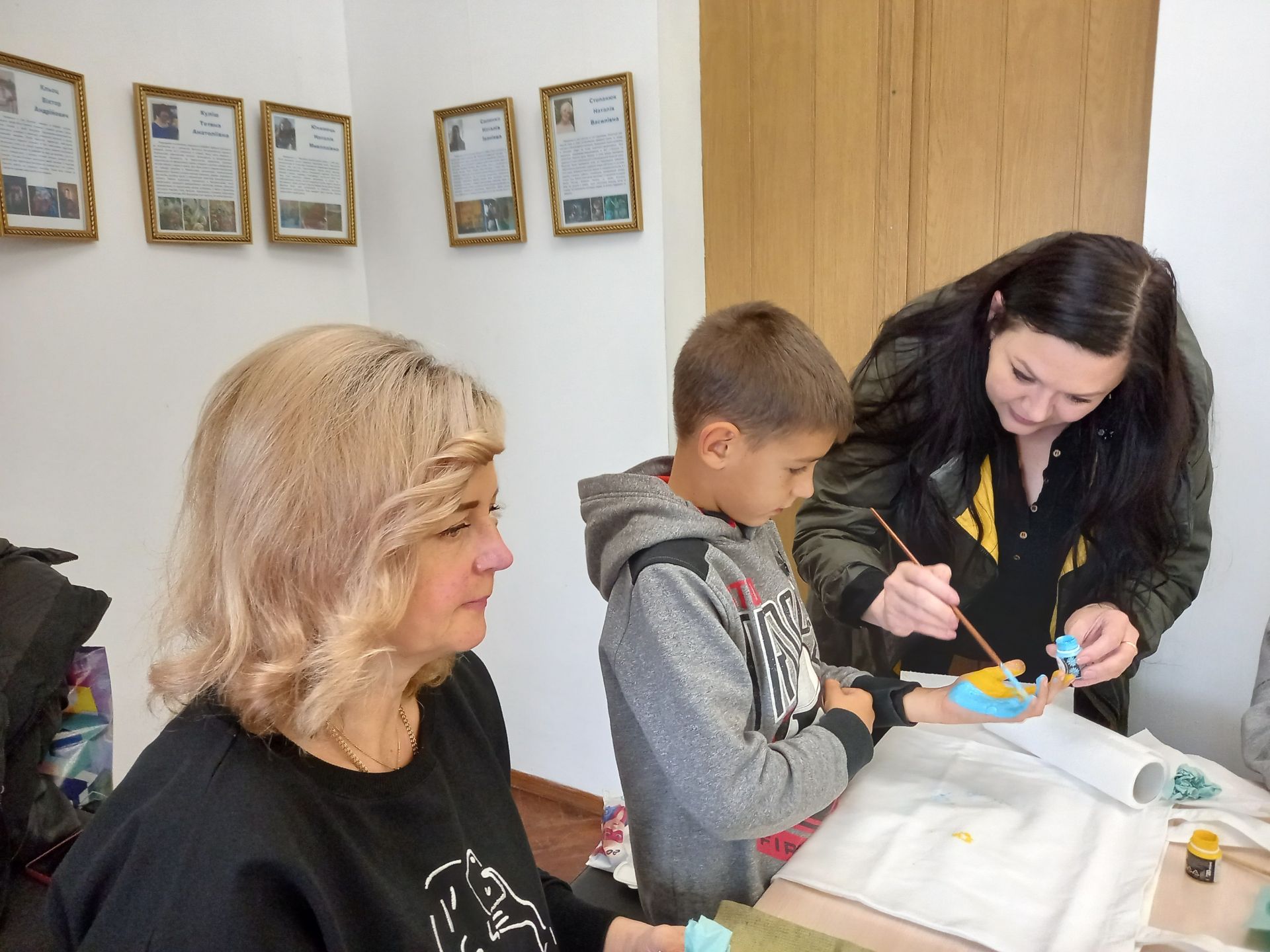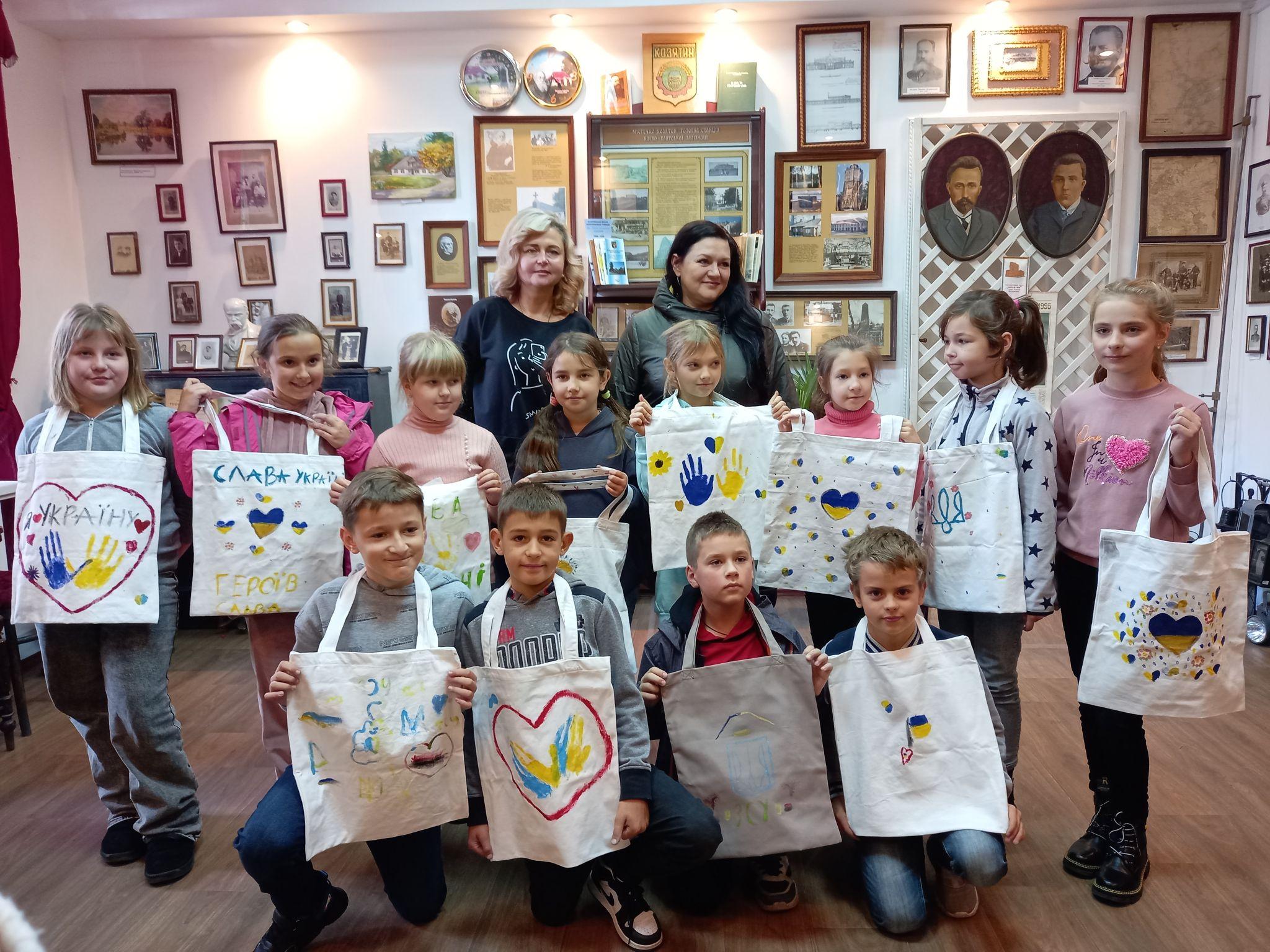 За годину усі торбинки вже готові. Поки фарба підсихає, директор Музею історії міста Лілія Макаревич проводить для школярів коротку екскурсію.