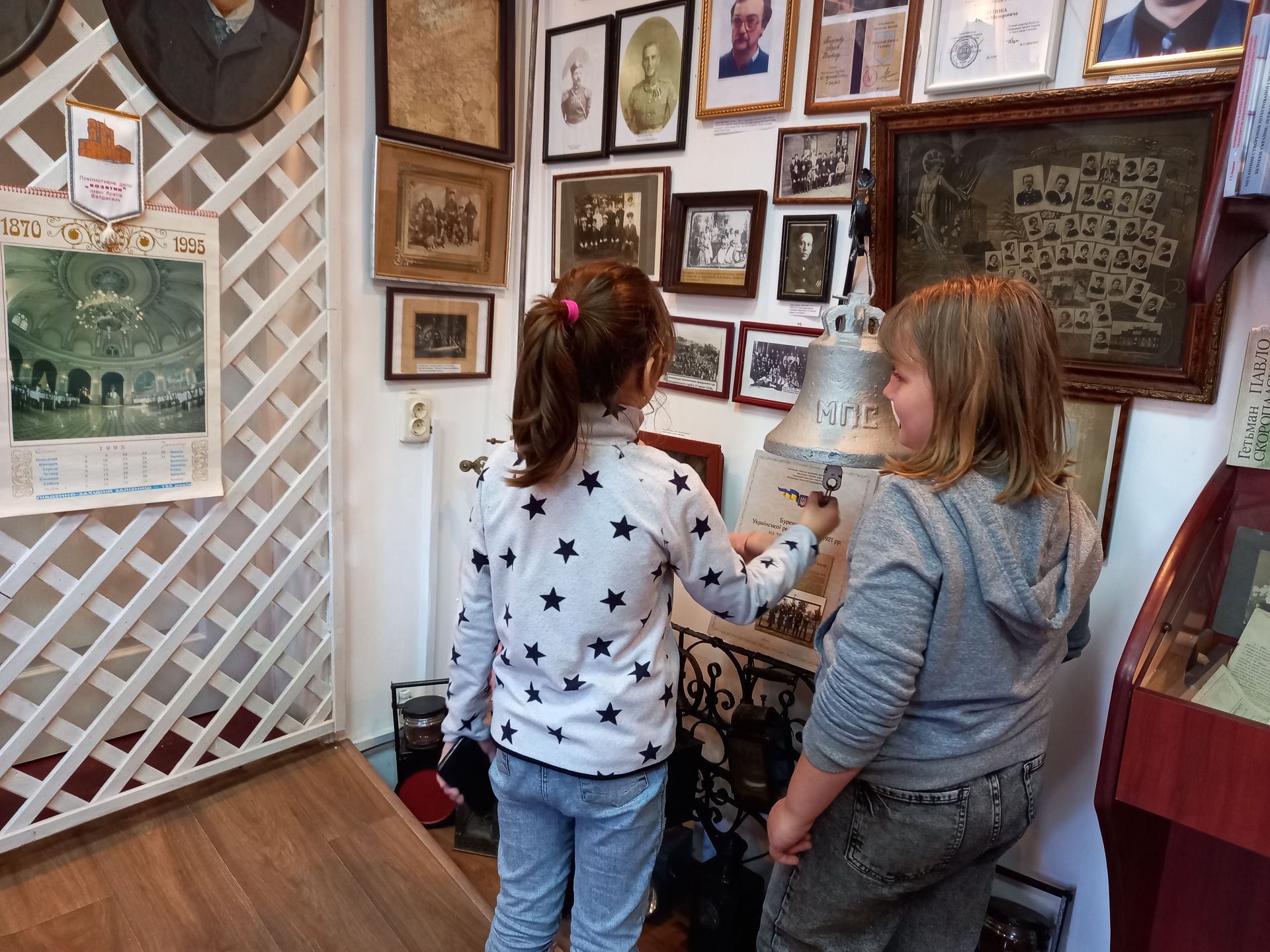 — Колись такими дзвонами користувалися на вокзалі, — розповідає дітям Лілія Макаревич. — Коли поїзд прибував на станцію, дзвонили в дзвін і таким чином повідомляли пасажирів. Коли поїзд мав відправлятися, дзвонили в дзвін знову і тоді пасажири знали, що треба зайняти свої місця у поїзді.
