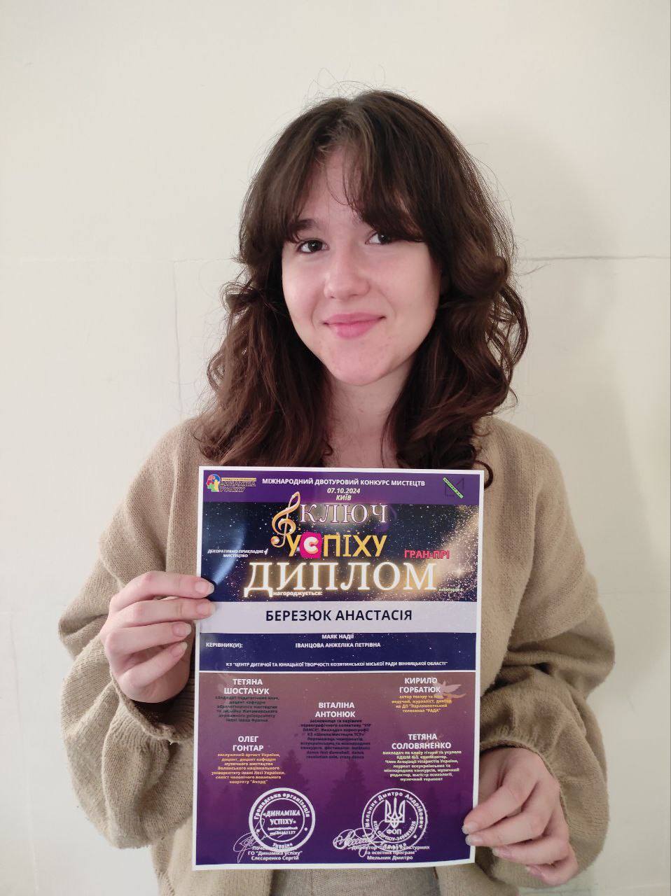 Як повідомляє Позашкілля Козятина, дівчина взяла участь у Міжнародному конкурсі мистецтв «Ключ до успіху», у номінації декоративно-прикладне мистецтво.