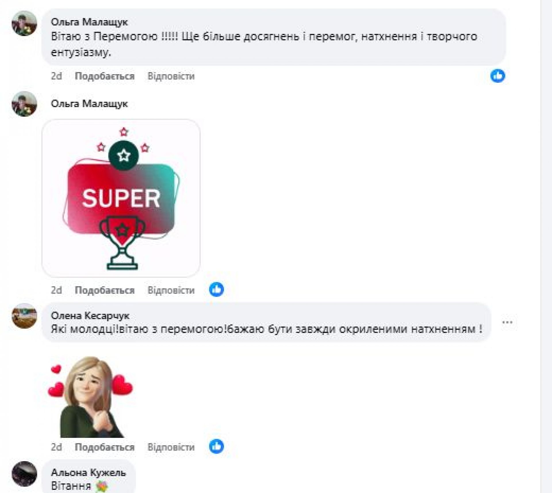 — Вітаємо з вагомим досягненням. Бажаємо сил та натхнення для подальших успіхів.