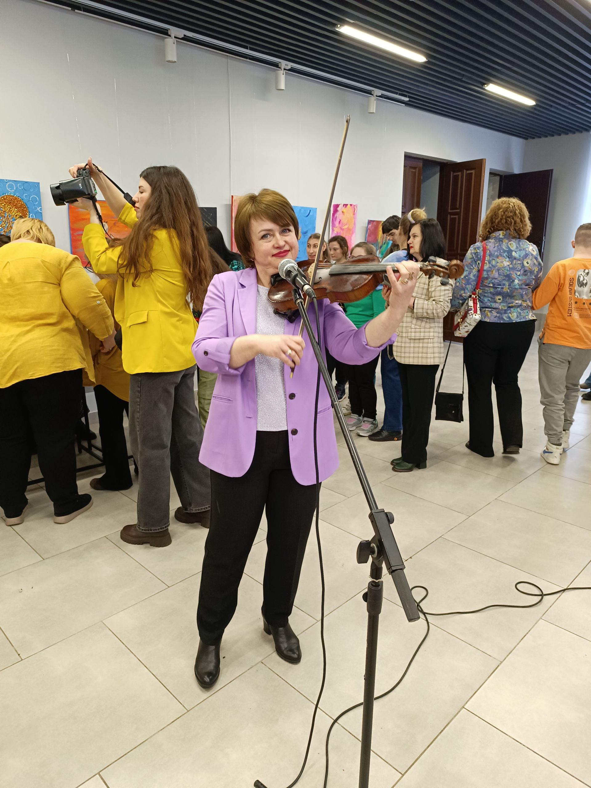 Останню картину для експозиції учасники створили разом під час арт-перформансу. Він відбувся під час відкриття. Тетяна Куліш, Анжела Коренкова та Оксана Висоцька почали готувати основу майбутньої картини. Поки художниці працювали з величезним полотном, котре розмістили у фойє міського будинку культури, закружляли у вальсі хмільниччани Назарій Гладюк та Ангеліна Цюпенко, заспівав Карім Шахін, а Людмила Баюк зіграла на скрипці.
